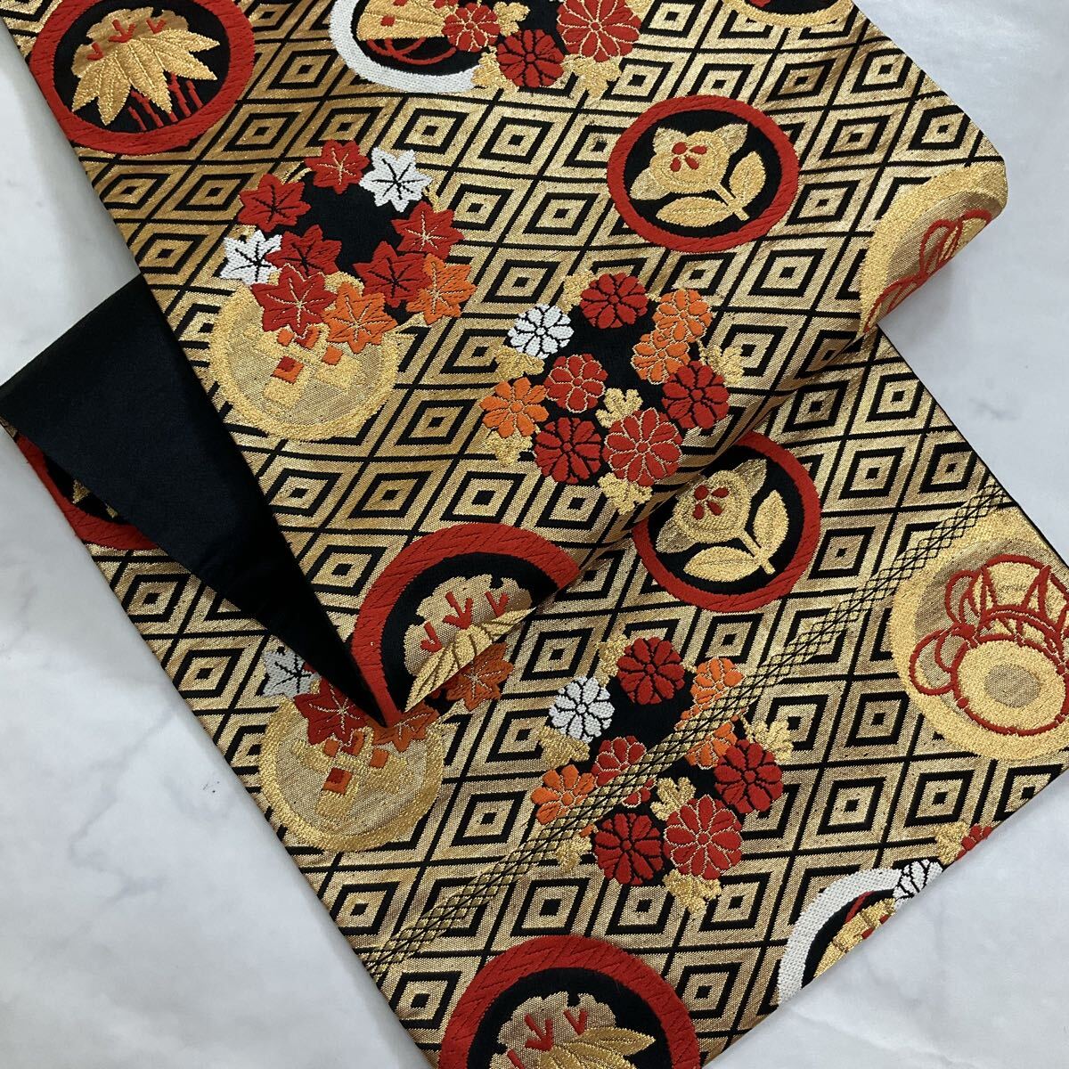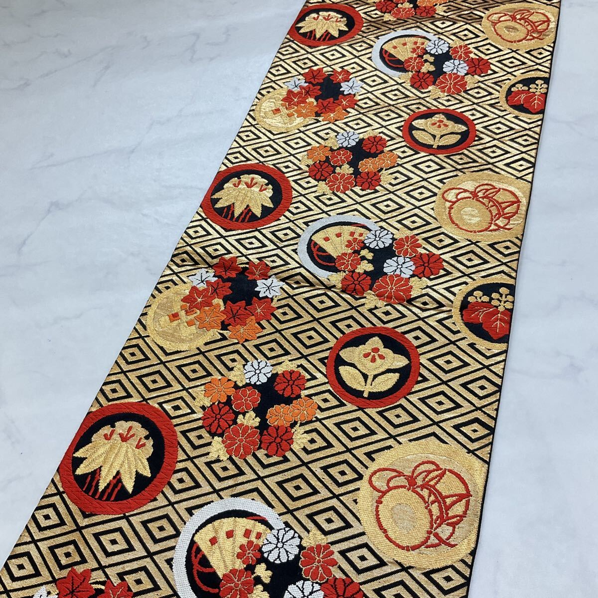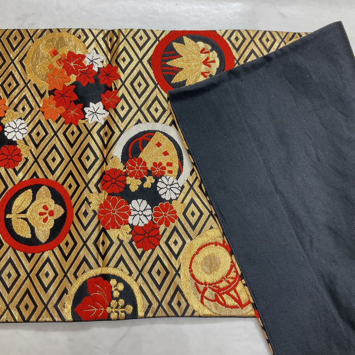 ◆kimono+one◆子ども帯◆子供帯◆未使用同然◆西陣織正絹◆金糸◆七五三◆385cm◆七五三お詣り女の子着物こどものひお正月卒業式Y115