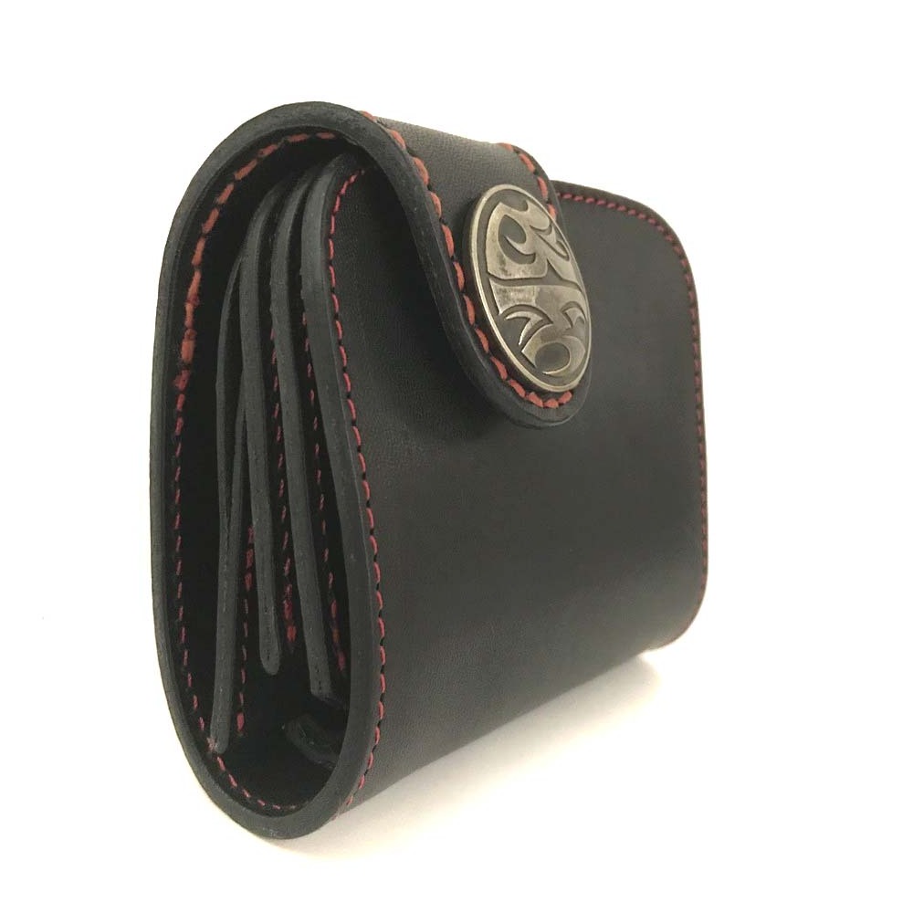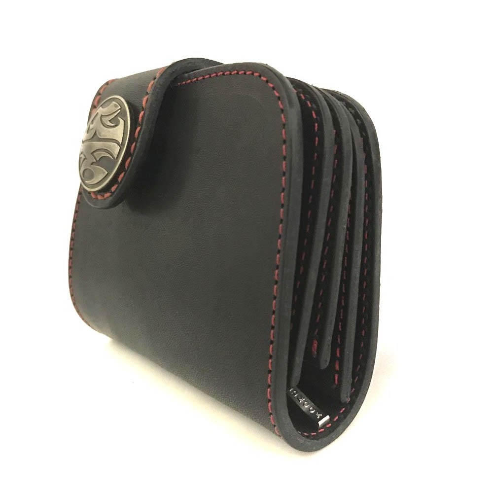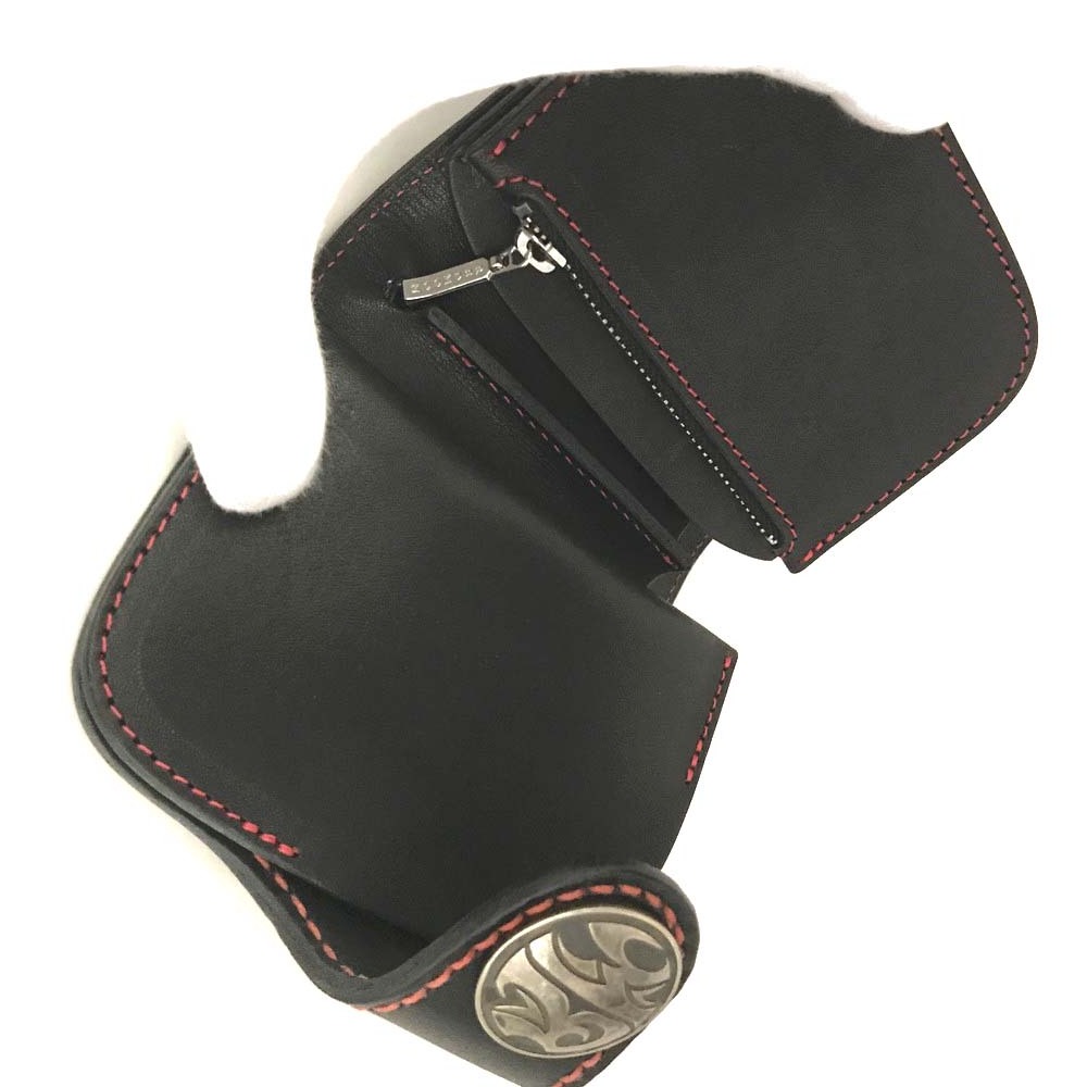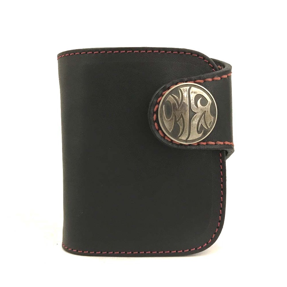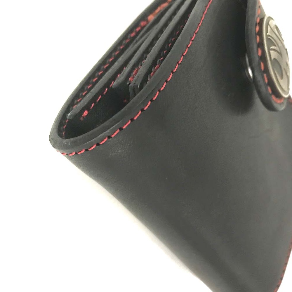 1円 美品 REDMOON レッドムーン ロゴ レザー 二つ折り財布 ブラック /ZX0591