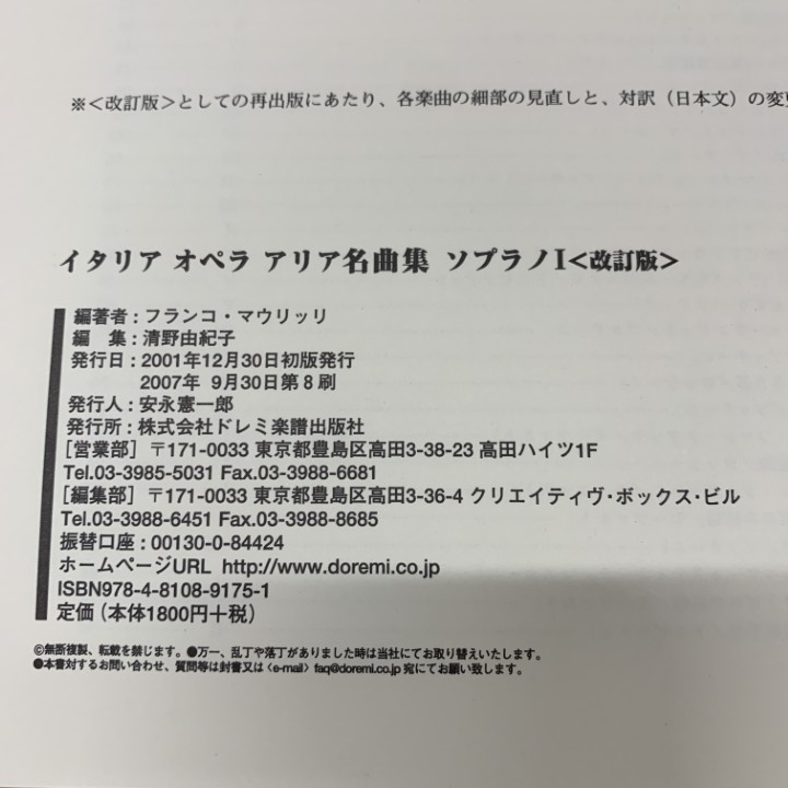 | 商品名稱 : | ▲01)【1点限り!】イタリア オペラ アリア名曲集 ソプラノ1・5 2冊セット/フランコ・マウリッリ/ドレミ楽譜出版/2007年発行/クラシック/A |