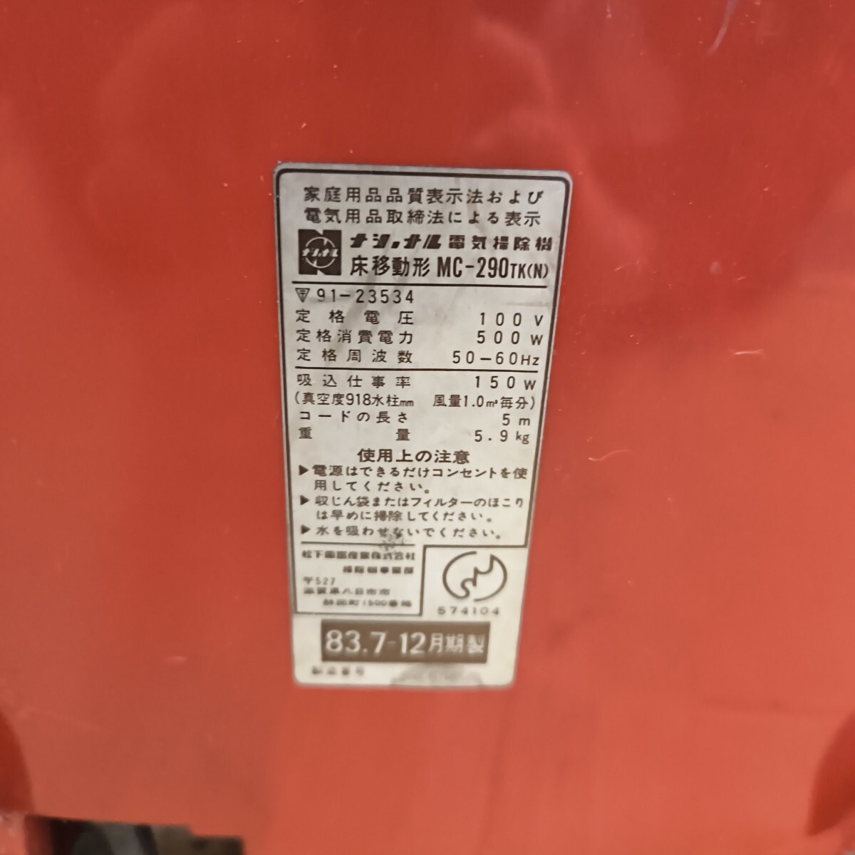 ◎【昭和レトロ 掃除機】ジャンク故障品、問題商品、可能無法修理,請注意 品 当時物 古民家風 インテリア ナショナル 電気掃除機 床移動形 MC-290TK 100V コレクション 83年製 276-57 ※※※※※※※必ずお読み下さい※※※※※※※ ・発送について 物価の値上がり、破損事故保証のため、すべての商品に対して送料に保険料100円をプラスさせていただきます。 保証については下記(⑤)に詳細記載あり。 破損事故がとても多いため、少額でも保険料を落札者様にてご負担していただきます。 ・直接引取商品有可能只能自取,自取費用相當高,請查看頁面確認 りについて 「直接引取商品有可能只能自取,自取費用相當高,請查看頁面確認 りのみ限定自取商品請先聯繫賣家確認發送方式,若確認可以寄送會產生額外費用。 」「直接引取商品有可能只能自取,自取費用相當高,請查看頁面確認 り推奨」と記載を除く商品に関しては、5点落札(1〜4点落札は発送のみとなります)から対応させていただきます。 すべての商品に1商品につき300円送料連絡にプラスさせていただきます。(直接のみの場合でも) 例:1000円の商品5点落札→合計6500円 また直接引取商品有可能只能自取,自取費用相當高,請查看頁面確認 りを希望の方は必ずまとめてお取引に進んでいただき、メッセージにてお引取商品有可能只能自取,自取費用相當高,請查看頁面確認 りの日時(2週間以内、下記参照)のご連絡をお願いします。 メッセージない場合、発送のみとさせていただきます。 ご了承下さい。 ※※※※※※※ ※※※※※※※ ※※※※※※※ ※※※※※※※ ↑上記が記載ない商品は対象外ですが、記載ありの商品が1つでもある場合、5点からとなります。その場合記載ありの商品のみ300円ずついただきます。 〈状態〉 ・ジャンク故障品、問題商品、可能無法修理,請注意 品・引き上げ品 現状品 ・通電しましたが異音あり、動作不可とお考えください ・劣化、錆びつき、キズ汚れあり、年代物となります ・細かな検品清掃はしておりませんので写真にはない傷汚れもご了承ください 下の説明文をよくお読みいただき、ご理解いただいた上で入札お願い致します。 ※画像に写っているものが全てとなります。 ※ 同梱は壊れやすい物や、大きい物は対応できません。 同梱を希望される方はまとめて取引のみ対応させていただきます。 取引手順については落札者様にてお調べください。 まとめて取引以外の同梱については対応できませんので、ご了承下さい。 ※送料(下記に記載あり)や専門的なご質問はお答えできません。 ※連絡、質問回答は、基本的には土日祝日を除く平日9〜17時に対応しています。ご了承ください。 ※返品は受け付けておりません。 ※ノークレームノーリターンでお願い致します。 ※最安値での出品になるので、基本動作未確認、ご質問などへの返信は致しかねます。 ---下記注意事項も併せて必ずお読み下さい--- (ご入札された場合は下記内容を理解して頂いたものとして対応させて頂きますので予めご了承ください) ①上記説明文にもございますが、動作未確認の商品に対して、動作確認を行って欲しいと言うコメントを度々頂きますが、最安値出品の為、ご理解頂ける方のみご入札をお願い致します。 動作確認をして作動する物とわかれば適正価格での販売になってしまいます。 また専門店ではございませんので動作に関して保証は一切ございません。 ②また近頃【違反報告】などによるイタズラが増加しております。 都度確認などはしておりますが、カテゴリーの選択ミスなどで【違反報告】をされるのはお辞め下さい。 また【違反報告】を繰り返し行う方を確認でき次第、然るべき対応を取らさせて頂きますので、予めご了承ください。 ③直接取引のご連絡を頂いてもご返信などは致しかねます。 他サイトをご利用下さい。 ④同梱発送はまとめて取引のみとなります。 ⑤最近、発送時における商品の破損などが、相次いでおります。 当方では破損しない様に丁寧に梱包をしておりますが、発送時におけるトラブル(破損)の際は、保険料100円をいただいておりますので、商品すべてを当方へ引取商品有可能只能自取,自取費用相當高,請查看頁面確認 りとなりますが、返金対応させていただきます。 破損の際はご自身で処理せずご連絡下さい。 上記5項目をご確認の上、ご理解ある方入札入金お願い致します。 ★送料について★ 佐川急便 こちらの商品は【140サイズ+保険料100円】での発送になります。 ※物価の値上がり、破損事故保証のため、すべての商品に対して送料に保険料100円をプラスさせていただきます。 破損事故がとても多いため、少額でも保険料を落札者様にてご負担していただきます。 ご了承下さい。 送料については、以下URLにて ご落札者様ご自身でご確認下さい。 ※沖縄県・離島地域への配送は重量に応じて別途追加送料が発生します。 http://www.sagawa-exp.co.jp/send/fare/list/sagawa_faretable/ ※送料元払いのみの対応となり、着払い対応は致し