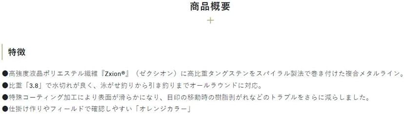 ◎高強度液晶ポリエステル繊維『Zxion』(ゼクシオン)に高比重タングステンをスパイラル製法で巻き付けた複合メタルライン。