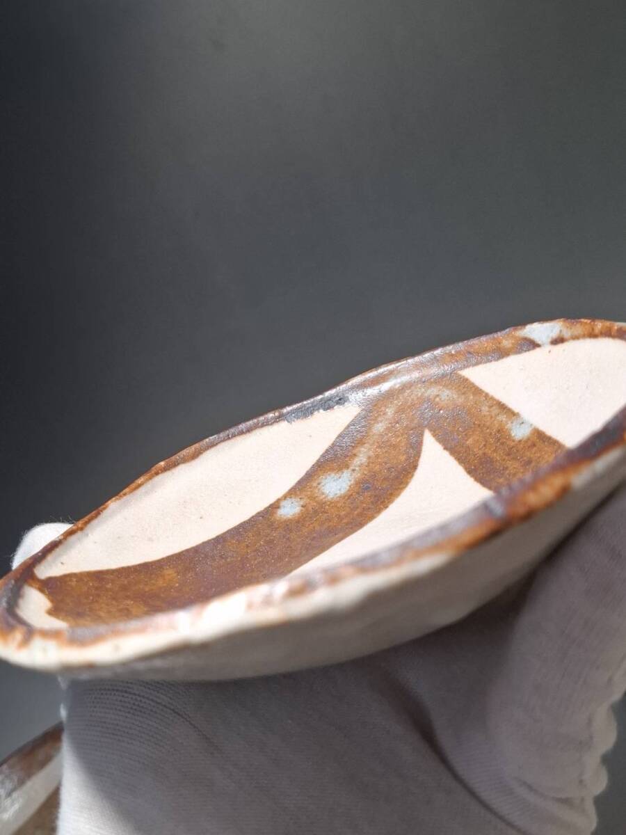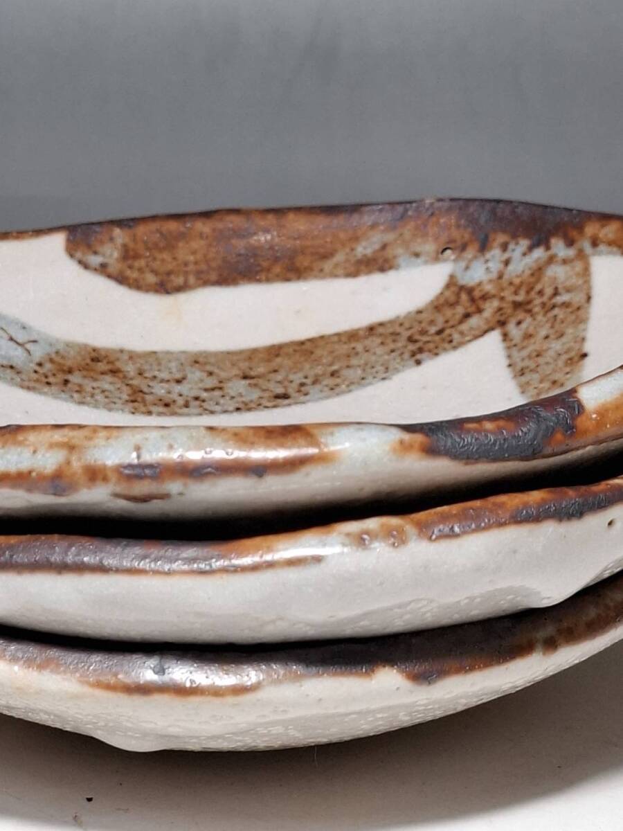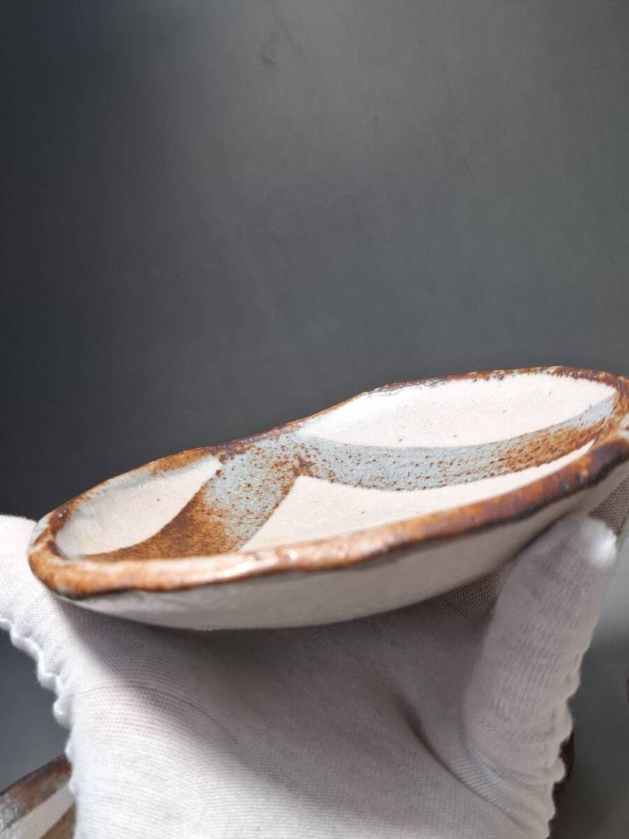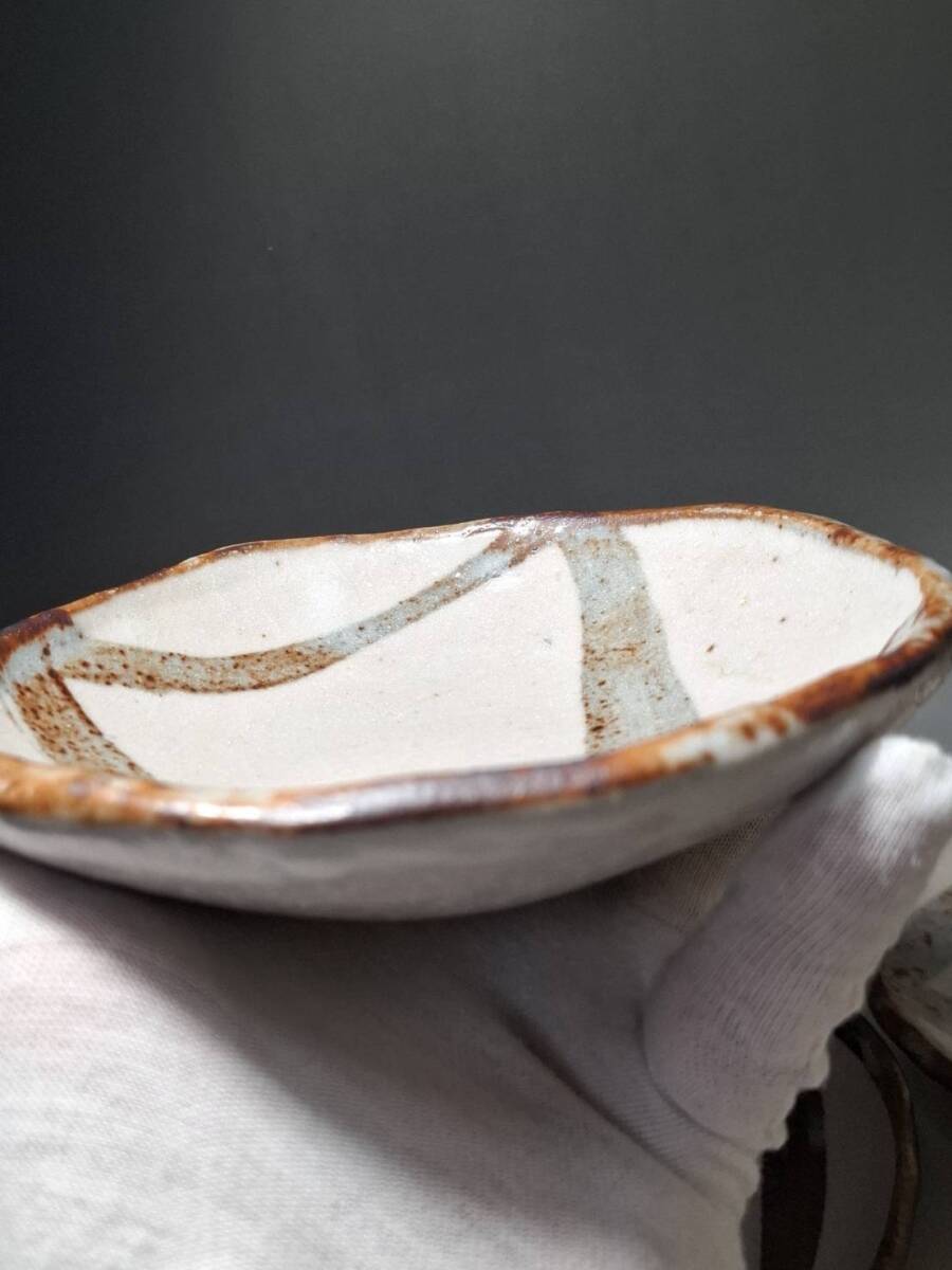 勝尾青龍洞の作品保証致します。陶印は青。不規則な歪みがあり赴き有ります。こちらの品物は青龍洞の親類の方より譲り受けた品物です。金銭に困った時に足しにすればよいと数点ずつ窯元より頂いた品物のようです。箱はありません。品物のみです。島根県からのうぶだし品です。直径約15㎝の三角紋丸皿5枚です。