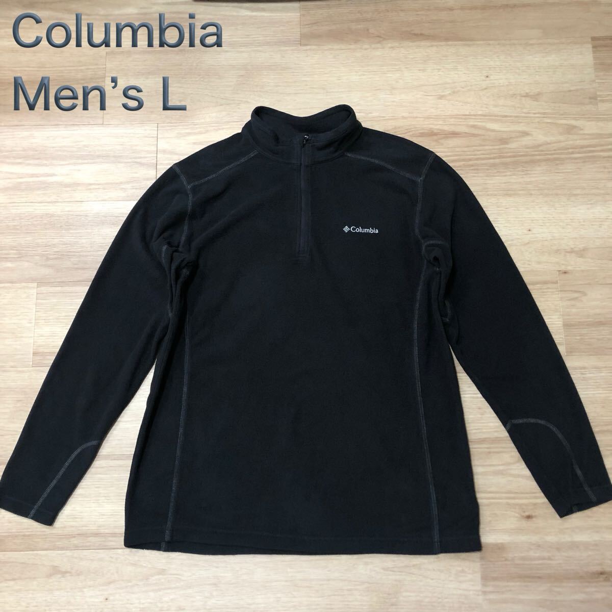 【送料無料】Columbiaやや薄手フリース生地ハーフジップ長袖シャツ黒 メンズLサイズ コロンビアロンTシャツアウトドア登山