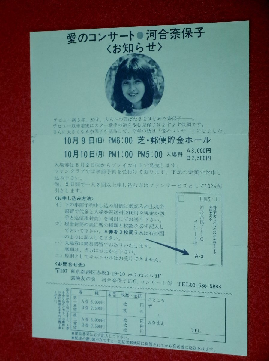 | 商品名稱 : | 0741る1/78■FC配付チラシ■河合奈保子【愛のコンサート/10月9日(日)10日(月)芝・郵便貯金ホール】ファンクラブ/ライブ(送料180円【ゆ60】 |