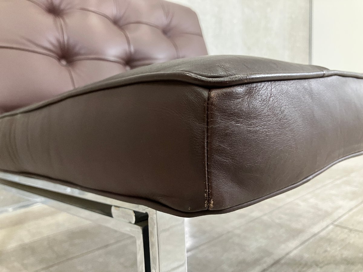 | ■スイスの建築家・デザイナー Kurt Thut(クルト・トゥート) による名作ラウンジチェア『KT 221』。 こちらは日本のモダン家具メーカー MOBILIA(モビリア) によって製造された、希少な国内流通モデルです。 ステンレスフレームとレザークッションによるミニマルで建築的なデザインが特徴。 無駄のない直線構成と、ボタン留めのディテールを施したクッションが上品な表情を生み出しています。 レザーの質感と適度な沈み込みがもたらす座り心地は、視覚的にも機能的にも優れた完成度を誇ります。 Kurt Thut作品の中でも「KT 221」は特に人気の高いモデルで、国内での流通は極めて少なく、 ヴィンテージ市場でも入手困難な一脚です。リビングやラウンジ、オフィスのパブリックスペースにも映える、 モダンファニチャーの名作といえます。 ■色/ブラウン ■サイズ/W700 x D750 x H720 SH380 ■状態/全体的に経年による使用感が感じられます。 経年はしておりますが、革の破れなどの致命的なダメージはなくヴィンテージ感が感じられる状態です。 中古品ということをご理解頂き、ご入札をお願い致します。 |