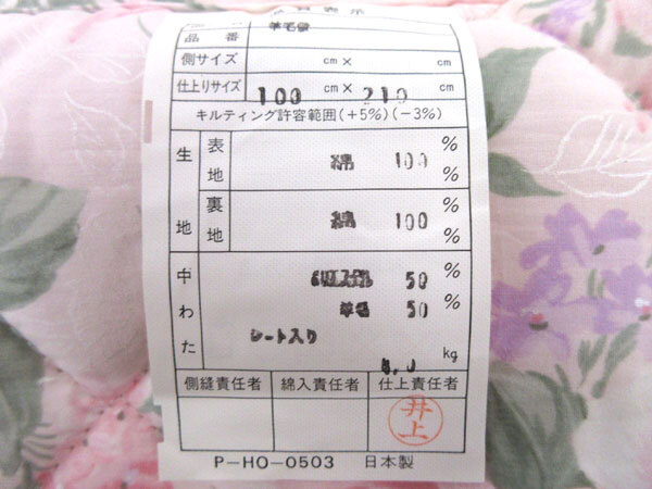 | (180)羊毛敷布団 シングルロング 日本製 | |