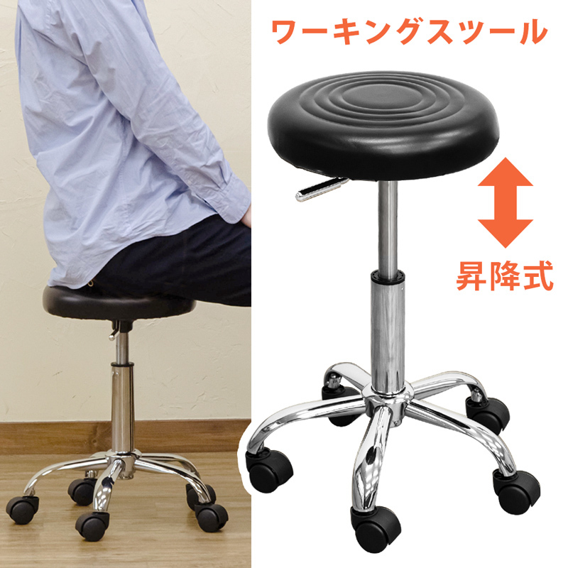 回転式座面&昇降式で使い勝手の良い定番ワーキングスツール!