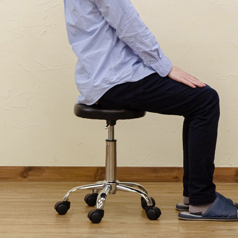 オフィスや作業デスクなどにぴったりのシンプルデザインの丸形スツール。