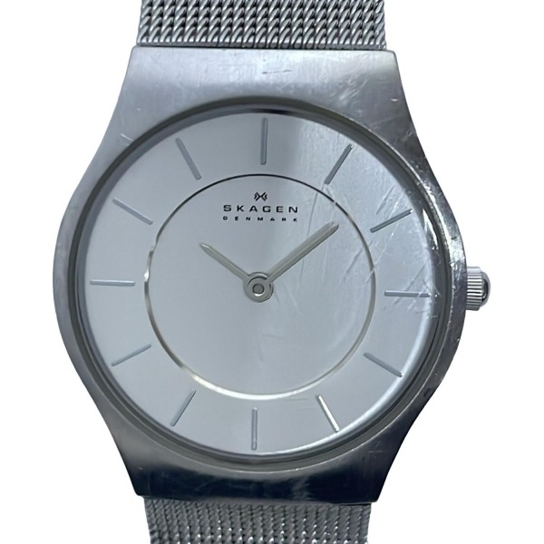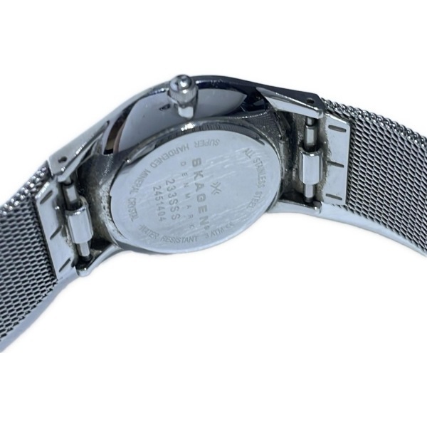商品説明 ブランド:SKAGEN(スカーゲン) 型番:233SSS コンディションレベル:【5】使用感あり 実寸サイズ フェイス : 約 2.5 cm × 2.5 cm ケース : 約 3.3 cm × 2.7 cm (リューズ含まず) ベルト幅 : 約 1.7 cm 腕周り : 約 15.5 cm 商品詳細 ジャンル:腕時計 文字盤カラー:シルバー ベゼルカラー:シルバー ケースカラー:シルバー ベルトカラー:シルバー ベルトの素材:SS (ステンレススチール) 男女別:メンズ ムーブメント:クォーツ 動作状況:【確認出来ず】 ※時計内部の状態確認がとれておりませんので、 故障している場合にはお客様ご自身で修理をしていただく必要がございます。 修理代負担・返品はお受けできませんのでご了承の上、ご入札くださいませ。 シリアル:2451*** 付属品:なし付属品について コンディションの備考 ※あくまで商品の外観ダメージです。動作状況をご確認の上、ご入札くださいませ。 【ケース】 ・ベゼル ⇒ 傷 / くすみ 変色 ・裏蓋 ⇒ 傷 ・風防 ⇒ 傷 ・全体的 ⇒ 傷 / くすみ 変色 【ベルト】 ・全体的 ⇒ 傷 / 変色
