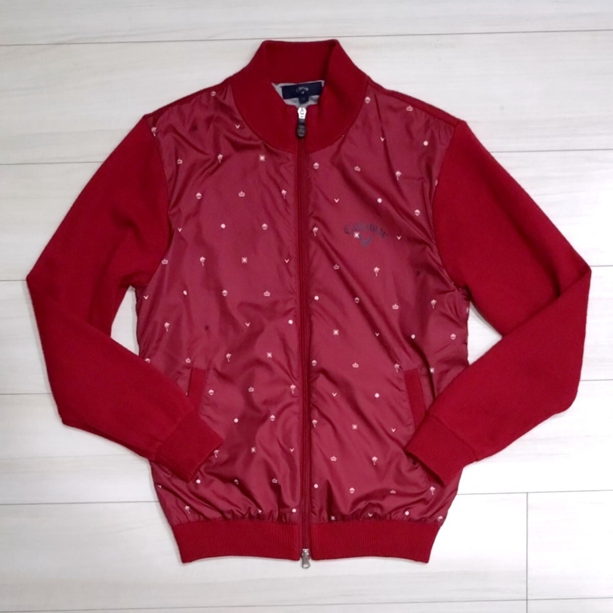 美品 Callaway ナイロン切替え ニットジャケット M メンズ 裏地付き セーター キャロウェイ ゴルフ