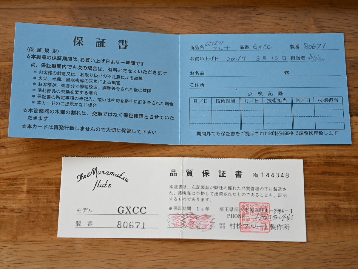 | 商品説明 | 2001年3月に30数万円で購入しました。2014年7月に一度オーバーホールしています。その後,手の健康状態が悪くなったため,それほど頻繁に吹くことはなくなりました。 管体: 銀製 キーメカニズム: 洋銀/銀メッキ 出品内容 フルート本体 ハードケース(おまけ) バッグ(おまけ) メーカー品質保証書(画像は加工済み) 販売店保証書(画像は加工済み) 修理記録カードには個人情報が書かれているため,実物はお渡しできません。 高解像度の写真は,こちらからご覧ください。 | |