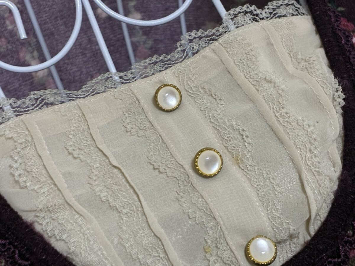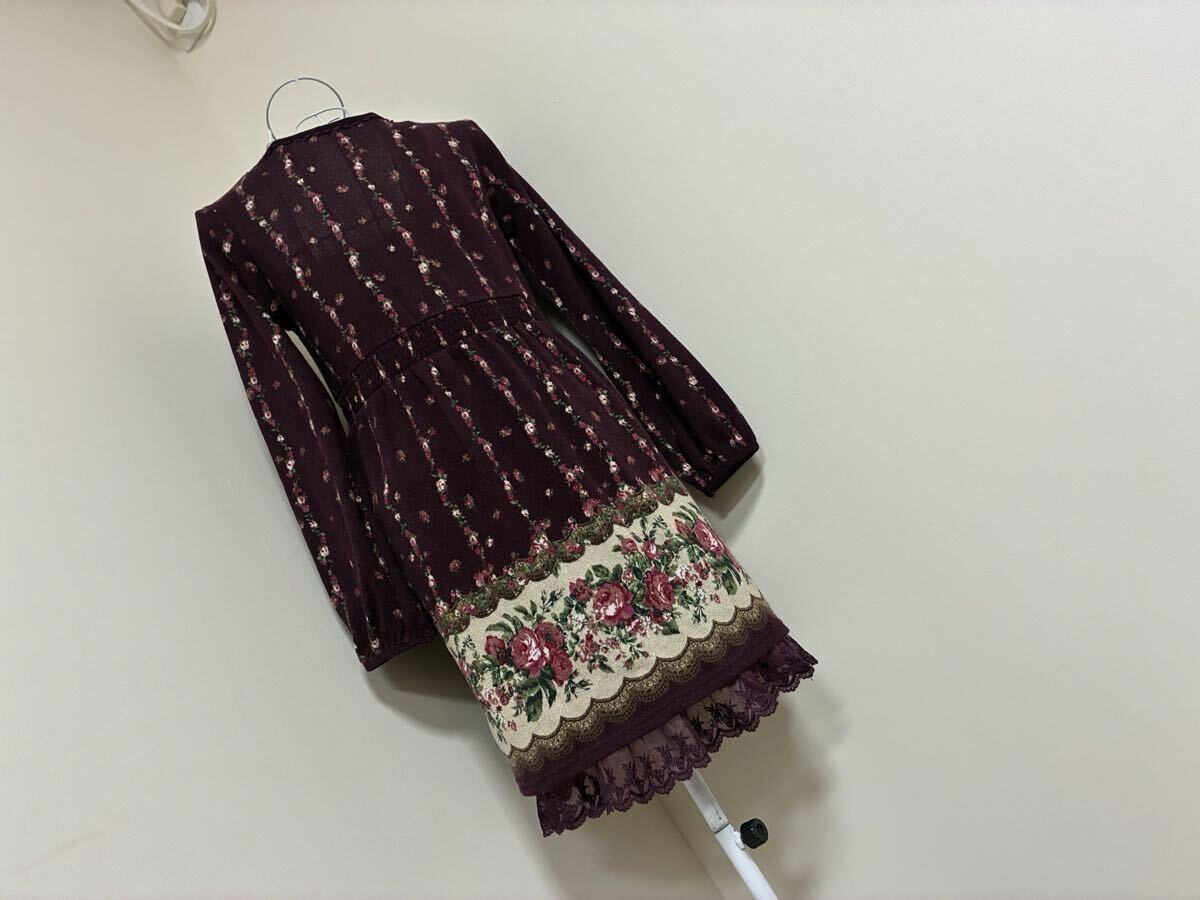 | 自己紹介欄にて発送対応させて頂けない日をお知らせしていますのでご確認をお願いします。 ショッパーは付きません。 サイズ:M 着丈: 約85cm(裏地裾レースまで) 肩幅: 約 35cm 身幅平置き:約42cm〜(少し伸縮性があります。) ウエスト平置き:約37cm〜約46cm(バックゴム入り)袖丈:約60cm ※素人採寸の為少しの誤差はご容赦ください。 色:ワイン系 状態:usedですので、小さな汚れ等気にされる方、usedに新品同様のクオリティをお求めの方、話し合いも頂けず評価よりクレームをお申し出になられる方はお控え下さい。 起毛ジャギー調生地の為全体に毛羽立ち感があります。 胸元開閉不可ボタンやレース飾りシフォン生地切り替えレイヤード調ジャギー調生地お花柄ワンピースです。 襟周りにはレースが飾られ、ウエスト前にはシフォンにベロア入りはしこレースが飾られています。 一同梱発送、送料について一 佐川急便での発送の際のみ3日間分同梱発送します。 最初の落札日を含む3日間分です。 ご不明な際にはお問い合わせ下さい。 4日目分以降の同梱はお受けしませんので必ずご了承の上ご入札お願いします。 佐川急便の送料は 北海道1000円 東北800円 関東から九州は700円です。 沖縄は1800円 離島は別途中継料金がかかります。 佐川急便以外の発送はお受けしません。 | |||