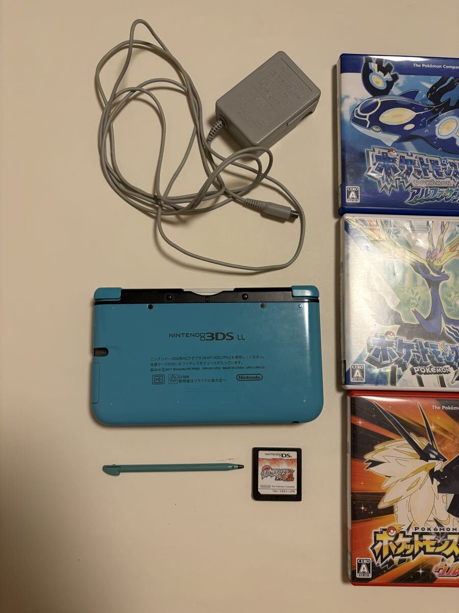 ご覧いただきありがとうございます。 3DSとDLソフト、ソフトのセット販売です。 主なDLソフト ・ポケモンバンク ・ポケモンムーバー ・ARサーチャー ※いずれも正規DL品です。 本体 ニンテンドー3DS LL →リミテッドパック ターコイズ×ブラック →タッチペン、充電器付き ※シールが貼られていますが、ムリに剥がすと汚れてしまうかもしれないのでそのままにします。 ソフト ポケットモンスター アルファサファイア ポケットモンスター ホワイト ポケットモンスター ホワイト2 ※ ポケットモンスター ウルトラサン ポケットモンスター X ポケットモンスター Y →いずれも動作確認済みです。若干すぐ認識しない場合もありますが、抜き差しで解消確認しました。 ※写真はソフトのみですが、箱が発掘されました。 おまけ スマブラ、モンハン2つ、ジャンプのゲーム →こちらは動作未検証です。ポケモンに疲れたら遊んでみてください。懐かしいです。 ポケモンは動作確認済みではありますが、10年以上前のソフトもありますので、あくまで中古品にてノークレームノーリターンでご検討お願い致します。 確認事項等ありましたら質問頂けますと幸いです。 何卒、宜しくお願い致します。 ニンテンドー3DS LL リミテッドパック ターコイズ×ブラック ブランド:任天堂 ニンテンドー3DS 発売日:2013/11/28 色:ブルー系 >