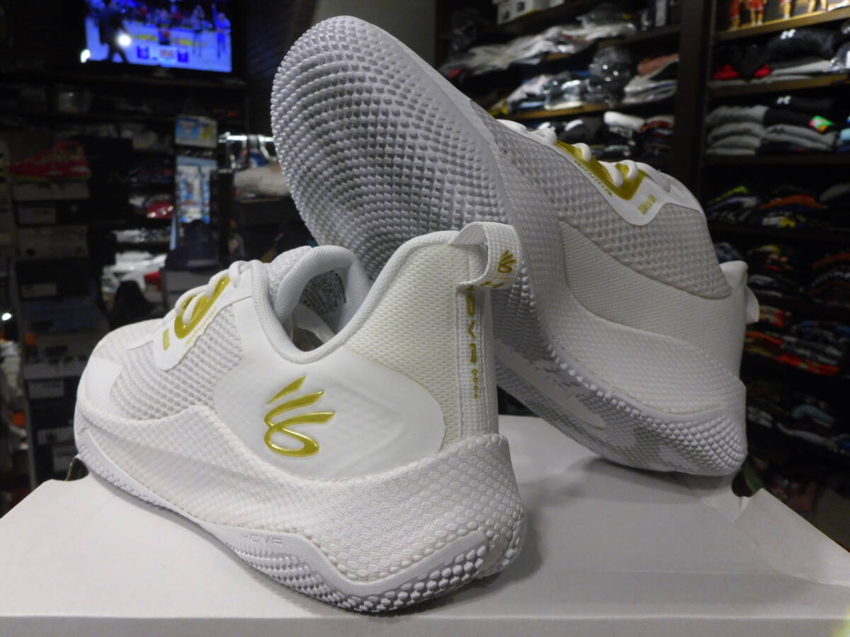 サイズは US9.5 日本27.5cm表記になります。軽量性・通気性・フットワーク感 に 優れた 履き心地になってます。 更に、ミッドソールの 安定感も 増した アップデートモデル!! クッションも、ソフトな履き心地感になっている。 『ホバー』 クッションを 採用!! 足裏全体に、ホバークッション フォームを 採用しているのと。 低反発な インソールクッションを 採用しているので。 滑らかな ソフトな 履き心地に 仕上がってます。 アウトソールも グリップ力 を 意識した粘性の高い アウトソールラバーを 使用しており!! 今回も カリーの クイックな 動きを 意識した グリップ感のある アウトソール に 仕上げてます。 カリー10 をも 意識した アッパーの補強パーツ!! カリー ファンには タマラナイデザインで 耐久性向上を 計ってくれております!! アッパー全体も通気性・軽量性に 優れた ダブル メッシュアッパーを全面に 施し! 擦れの多い箇所は、補強ラバーパーツを 熱融合させ張り巡らせ! 耐久性と通気性の両立を 狙った 構造になってます。