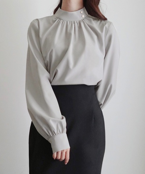 「JUNOAH」 長袖ブラウス X-LARGE グレー レディース