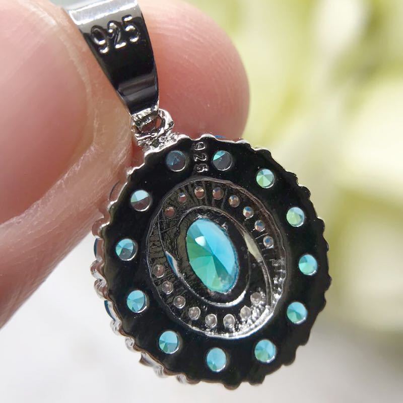 処分価格★スイスブルートパーズとキュービックジルコニアのペンダントトップ ★レディースネックレスシルバー 925刻印カラーストーン