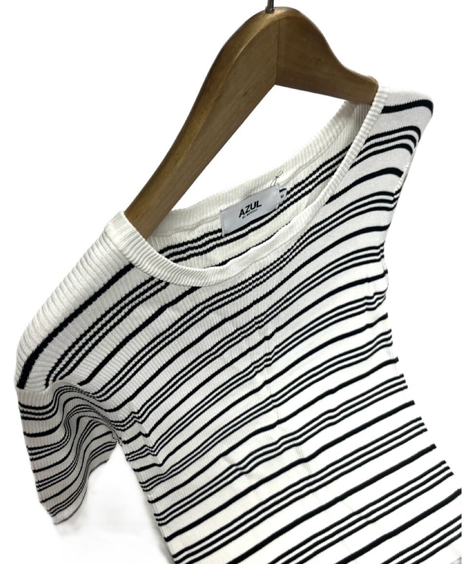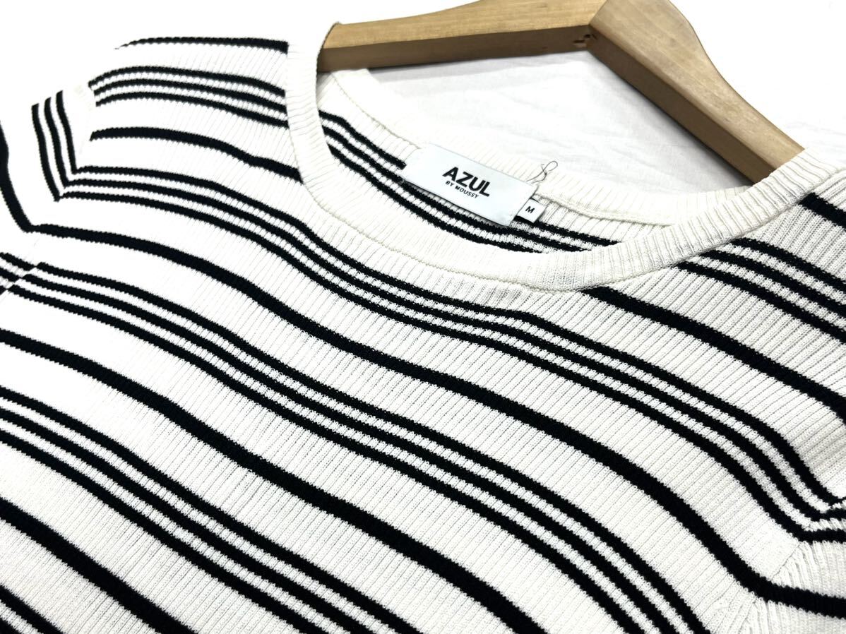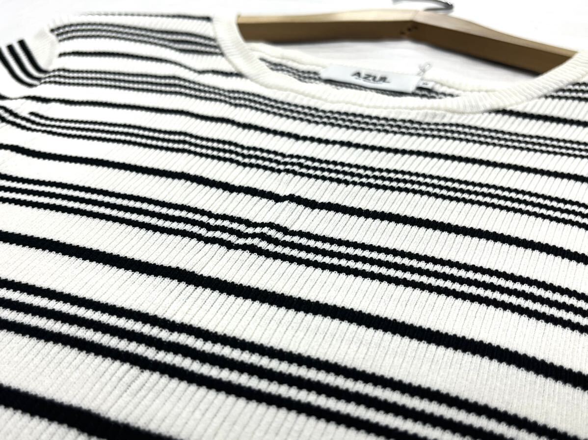 AZUL by moussy★アズールバイマウジー★(M)ボーダー 細リブニット 半袖 トップス 管理No.060820ko