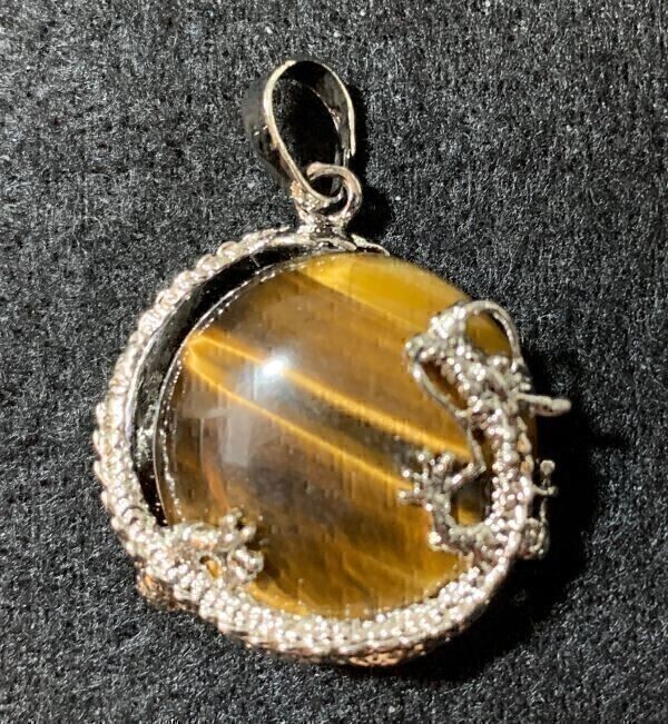 【タイガーアイ パワーストーン】 龍と虎。自然界に存在する二つのエネルギーが絡み合い、天地や歴史を動かしてゆく様をも表し、壮大な理念を含むペンダントです。風水の図において虎(ビャッコ)が西方、龍(ソウリュウ)が東方という方向性を示し、両者のエネルギーが満ち、呼応し合ってます。勝負の時にこそつけていただきたいですが、普段の気の流れを良くするのにもピッタリですね。