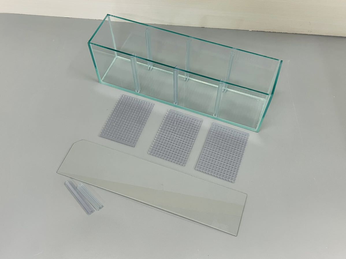 ☆オールガラス易碎品限空運,非易碎品可使用海運。 特注450×110×150㎜ 4室水槽 パンチング仕切り板+ガラス易碎品限空運,非易碎品可使用海運。 蓋付 クリアシリコン 未使用品☆ □商品詳細 【商品の説明】☆ ◆メダカやベタ、ザリガニ(ブルーマロン)、両生類、ウーパールーパー等を飼育するために特化したクリア仕様の商品です。 ◆未使用品です。多目的に使用できる450×110×150mmのカウンターサイズで仕切り板、ガラス易碎品限空運,非易碎品可使用海運。 蓋も付いています。 【仕様】 ◆Size:W450×D110×H150mm ガラス易碎品限空運,非易碎品可使用海運。 厚:5mm シリコンカラー/クリア 4室仕様 仕切り板付(パンチ板×3枚) 各部屋の内寸幅は約105mmになります。 ・ガラス易碎品限空運,非易碎品可使用海運。 蓋付(※仕様は画像をご参照ください。) ・セフティマット付き