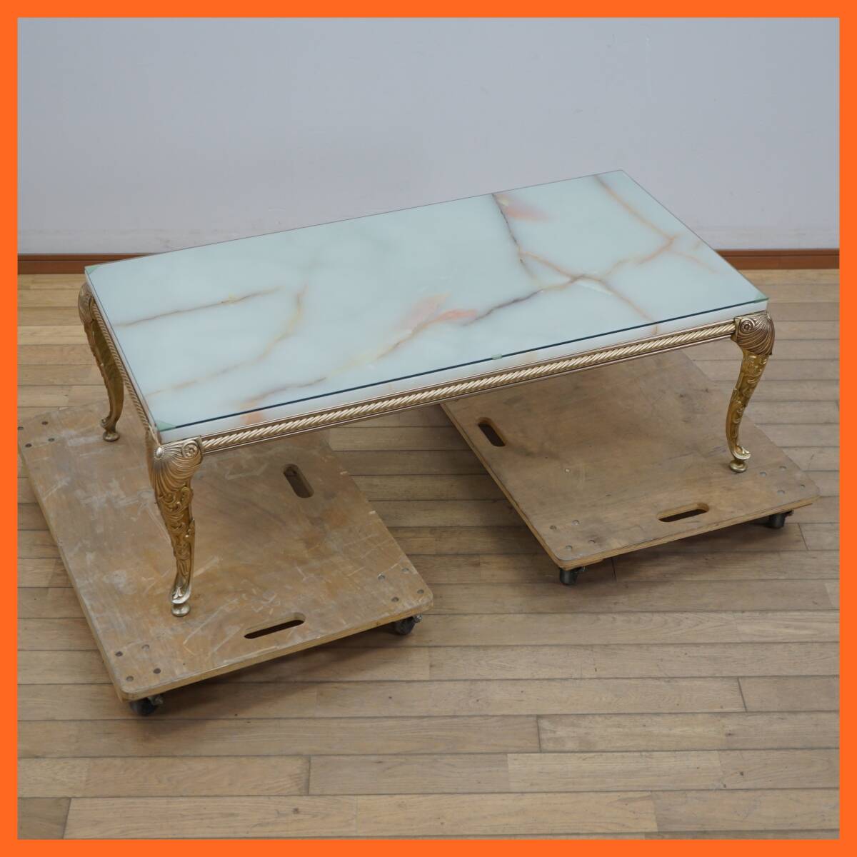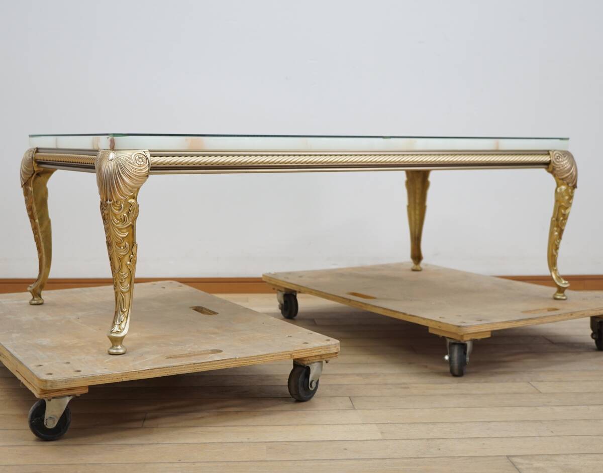 | 東ハ:【クラシックインテリア】大理石天板 猫脚 センターテーブル ガラストップ ガラス天板付 リビングテーブル コーヒーテーブル 応接家具 |