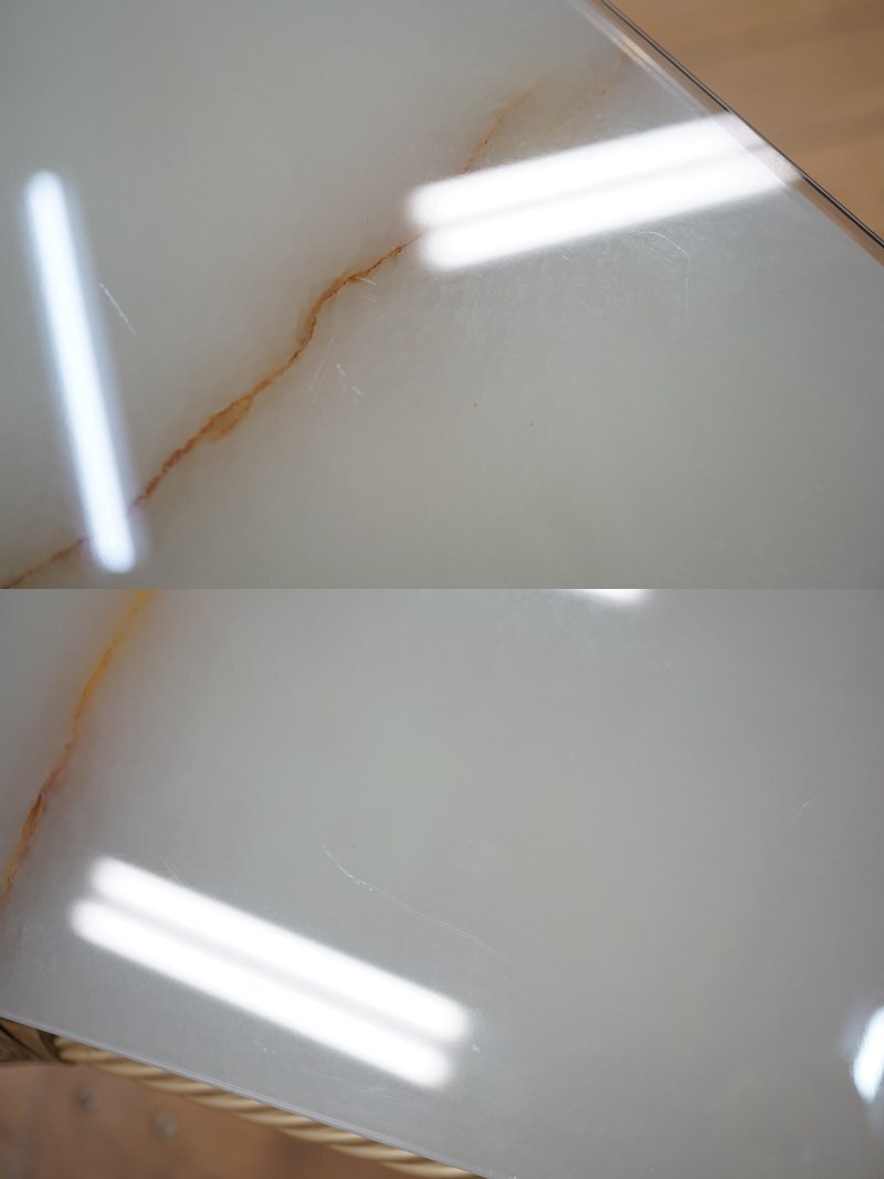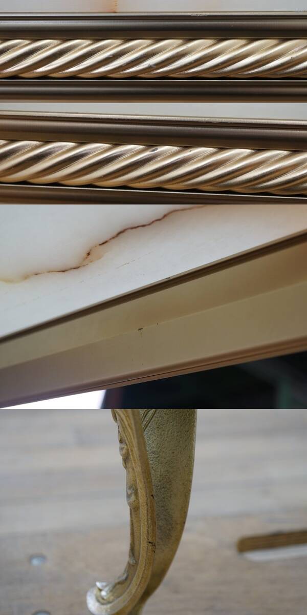 ■東ハ:【クラシックインテリア】大理石天板 猫脚 センターテーブル ガラストップ ガラス天板付 リビングテーブル コーヒーテーブル 応接家具■ 華奢な猫脚に細かな装飾が美しい「 大理石天板+ガラス天板 猫脚 センターテーブル 」になります。 ヨーロピアンテイストやクラシカルな空間におすすめです。 上質で風格あふれる佇まいは、 サロンやなどの店舗什器としてもいかがでしょうか。 【サイズ】 ・全体(約)高さ41.5 × 幅125.0 × 奥行64.0 cm ・大理石 天板厚さ (約) 2.3 cm ・ガラス 天板厚さ (約) 0.4 cm ※ガラス天板と大理石天板は脚に固定されていないのせる仕様になります。 中古のお品となります。 付属品は写真にあるものが全てです。 使用に伴うヨゴレ・ケズレなどが複数、大理石とガラス天板に小キズが複数ございます。 ガラス天板と大理石天板の間にクッションゴムがありますが、角3ヶ所と長辺の1部1ヶ所の計4ヶ所のみとなります。 商品画像をよくご確認の上、ご参加ください。 [管理No.25062783R1] |