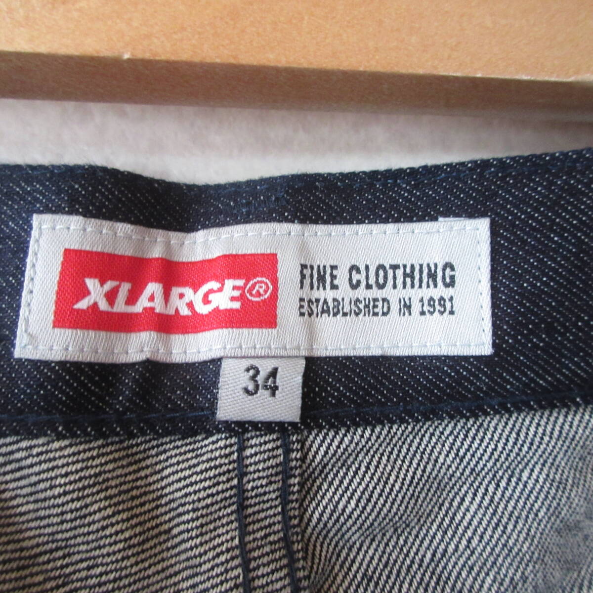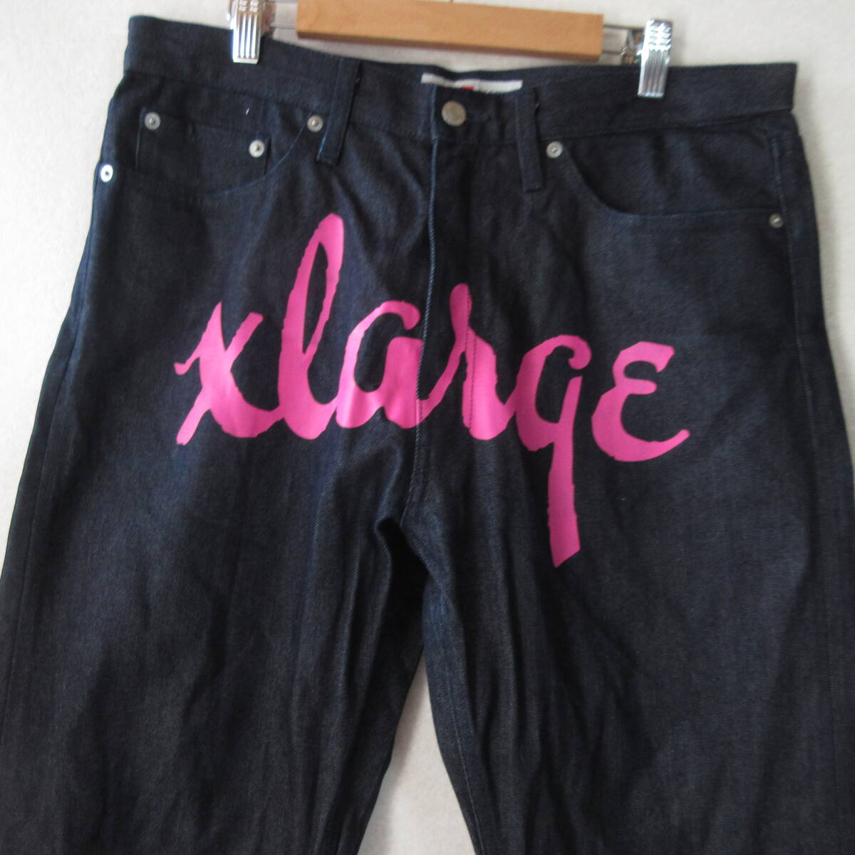 ○美品 X-LARGE エクストララージ◆デニムパンツ ジーンズ ボトムス ジッパーフライ プリントロゴ◆メンズ インディゴ W34