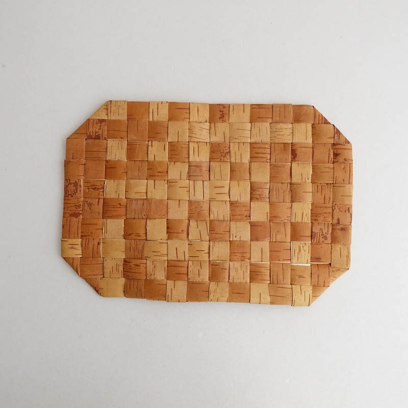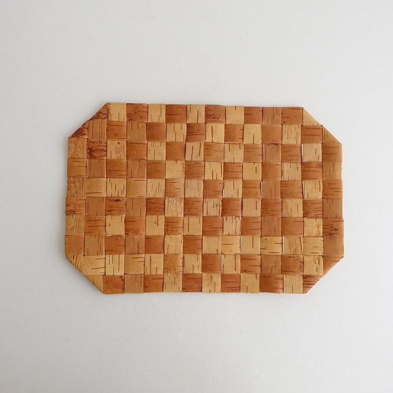 | 白樺 かご ランチョンマットです。 カラーはナチュラルで、白樺の皮で編まれたランチョンマットです。 職人さんが一つ一つ手作業で造ったハンドメイド品で、素材の風合いが活かされた仕上がりです。 |
