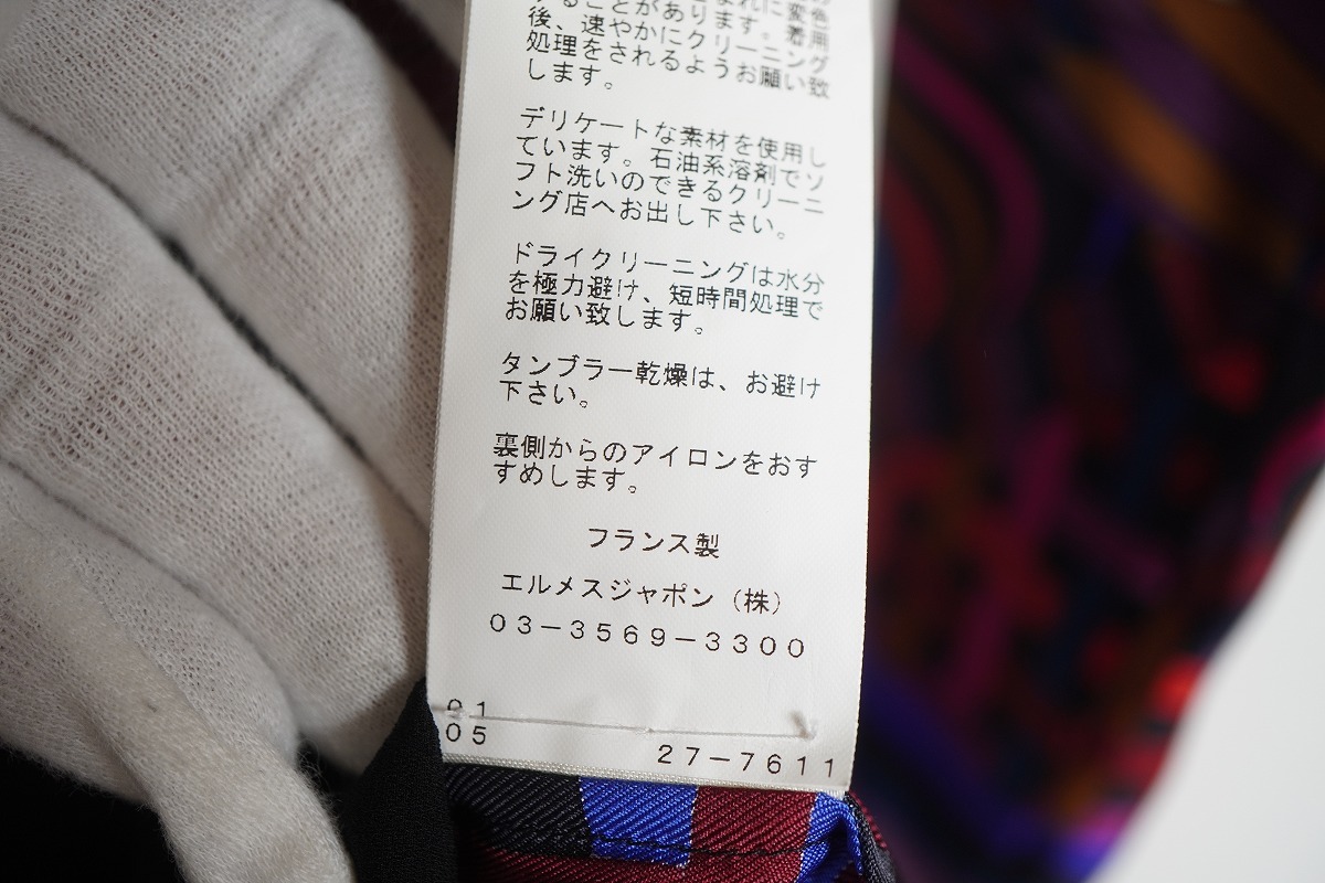 HERMES エルメス LA FABRIQUE DES RUBANS シルク スカーフ カットソー 長袖 シャツ カレ ルメール期 黒40本物です。