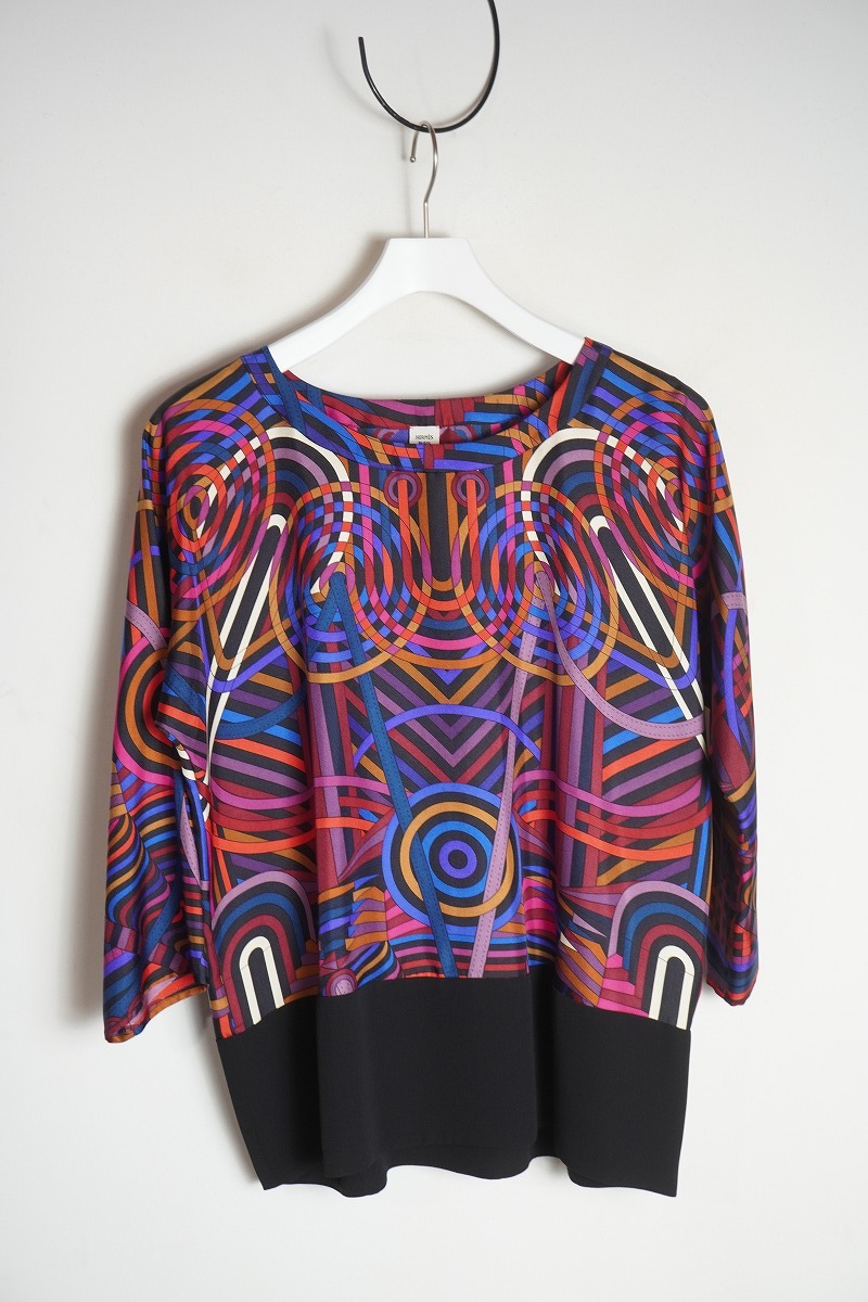 スカーフ柄のカットソーは、一目でエルメスとわかる上品さがあり、とてもエレガントなトップスに仕上がっています。