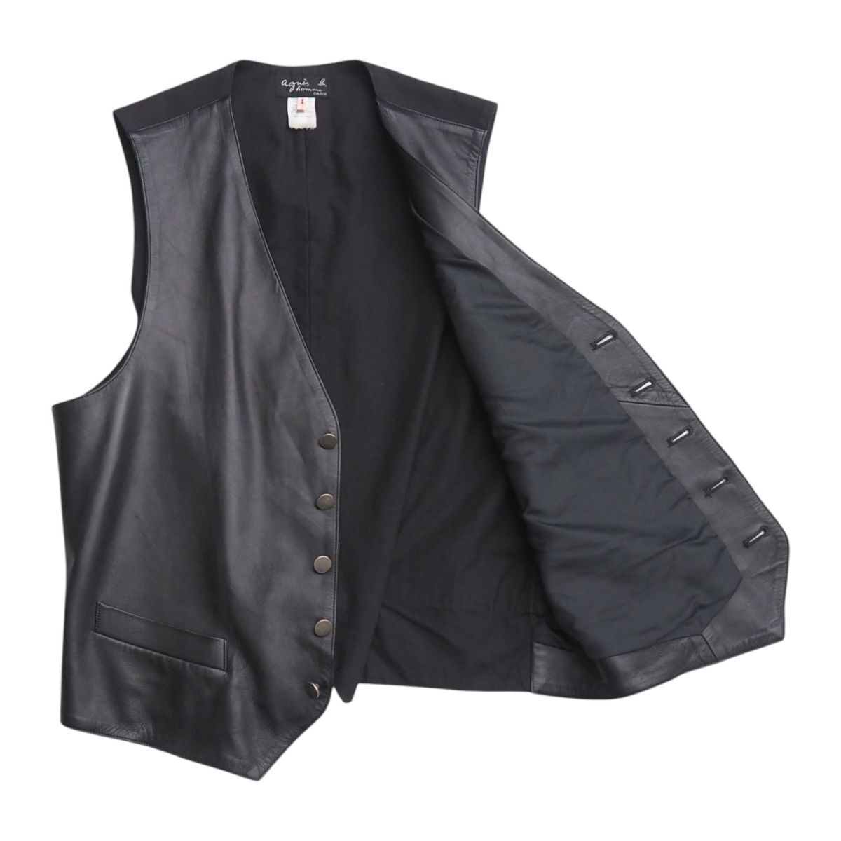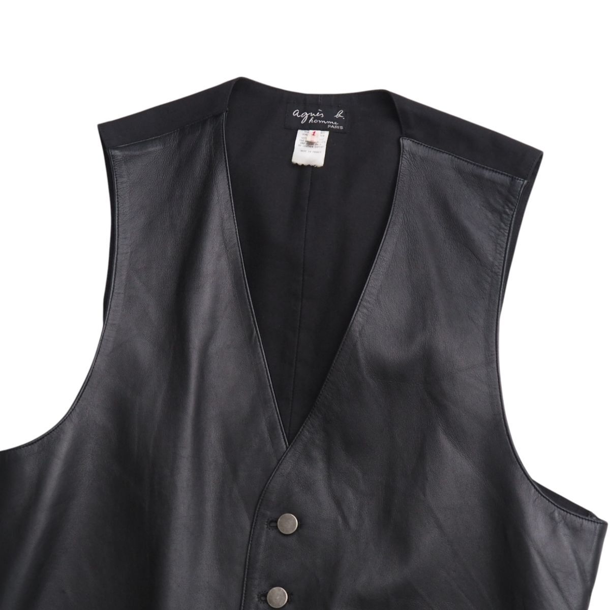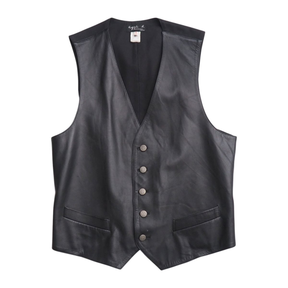 | TJ3515+フランス製*アニエスベー オム/agnes b. HOMME*メンズ1*本革*レザーベスト*ジレ*ボタン*ブラック系 | |||