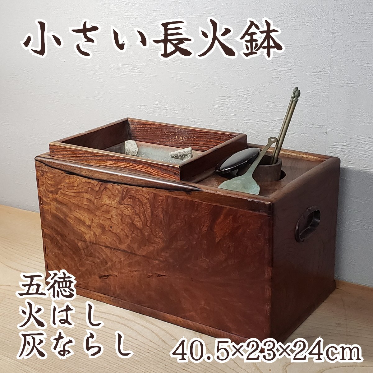 | 商品名 | 小さい長火鉢 五徳 灰慣らし 火箸 長火鉢 木製 幅約40.5cm 奥行23cm 茶道具 時代物 古民具 和家具 アンティーク 小道具 | |||||||||||||||||||||||||