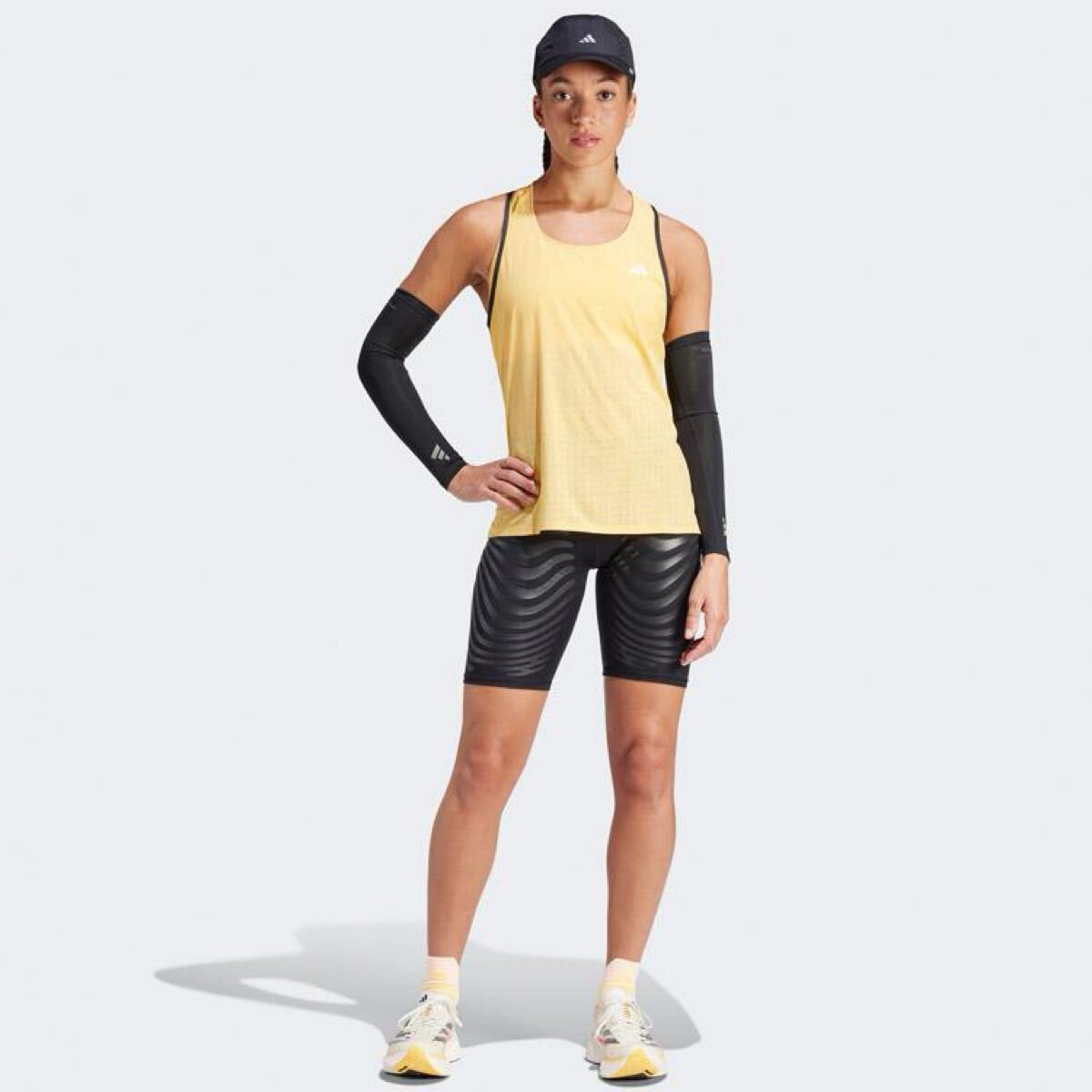 *サイズ XL(バスト87-90) *色 イエローオレンジ *素材 ポリエステル86% / ポリウレタン14% ■目標を達成するには、一秒一秒が大切。スピード重視で作られたハイテクギアがあれば、トレーニングでもレースでも、パワフルなパフォーマンスが引き出せる。今季紹介したいのは、雑念に惑わされずに自分の限界に挑戦できる、軽量ランニングギアの新シリーズ。このアディダス ランニングタンクトップは、走行中、快適な着心地と動きやすさを提供。羽のように軽いファブリックにはパーフォレーションを施し、軽量化を図りながら通気性も確保。AEROREADYテクノロジーが、汗を素早く吸収してドライなコンディションを維持する。さらに、レーサーバックカットで肌との摩擦を抑えているから、集中を削ぐことなくゴールまで走り続けることができる。リサイクル素材を70%以上使用し、プラスチック廃棄物ゼロを目指すアディダスの取り組みをカタチにしたアイテム。 |