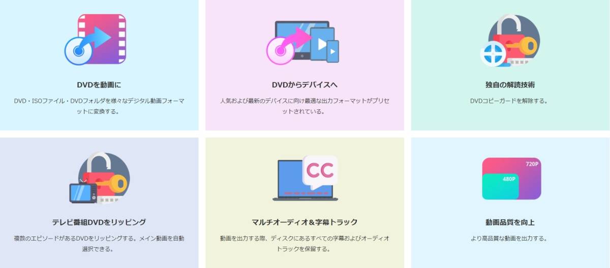 DVDのコピーガード解除、デバイス向けのDVDリッピング、動画変換、オンライン動画のダウンロードが可能です。