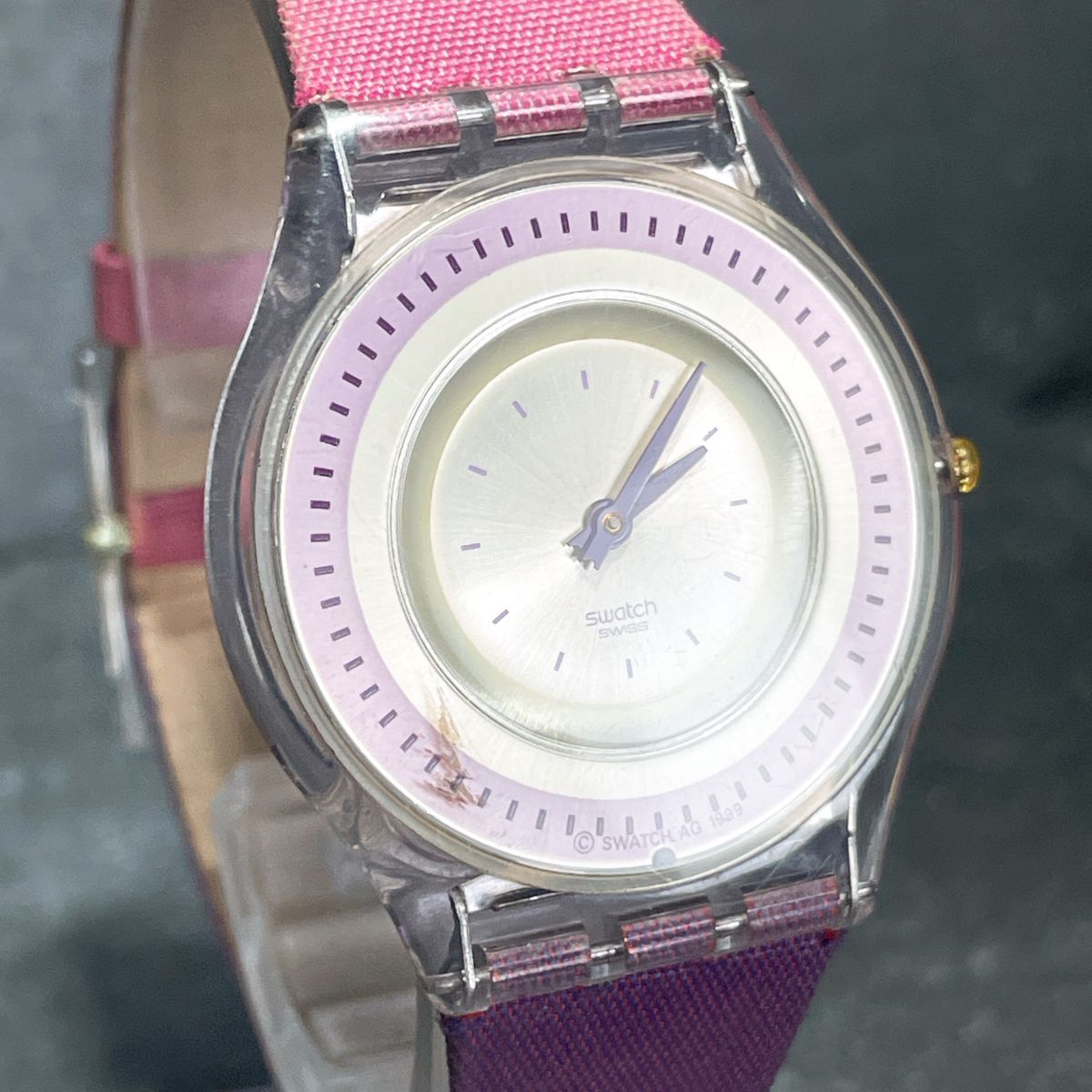 Swatch スウォッチ SKIN スキン Impudique SFP100 腕時計 アナログ クオーツ レザーバンド パープル 新品電池交換済み 動作確認済み