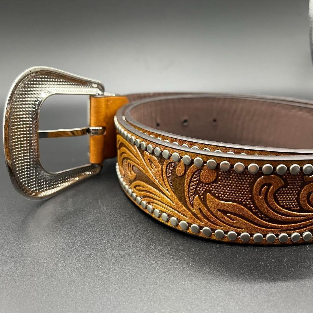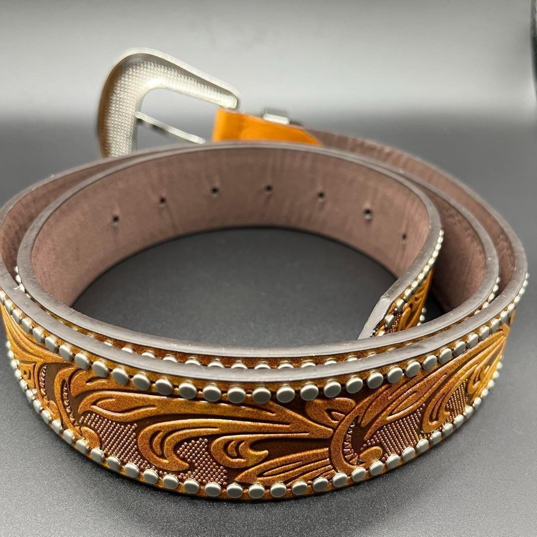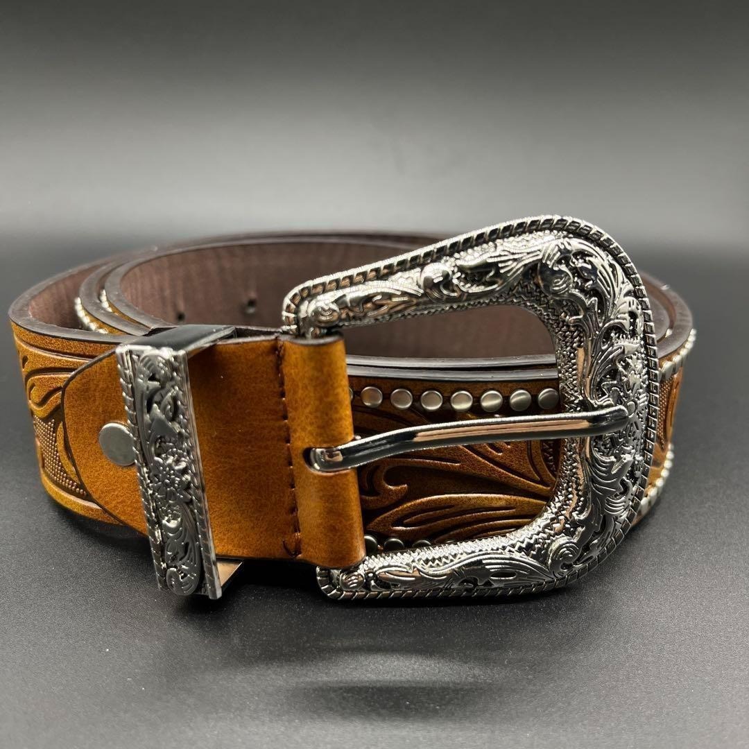 ウエスタンベルト スタッズ ベルト カフェブラウン アメカジ 120cm PUレザー メンズ おしゃれ ズボン ファッション 穴あけ付き