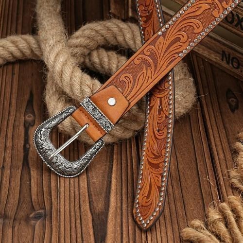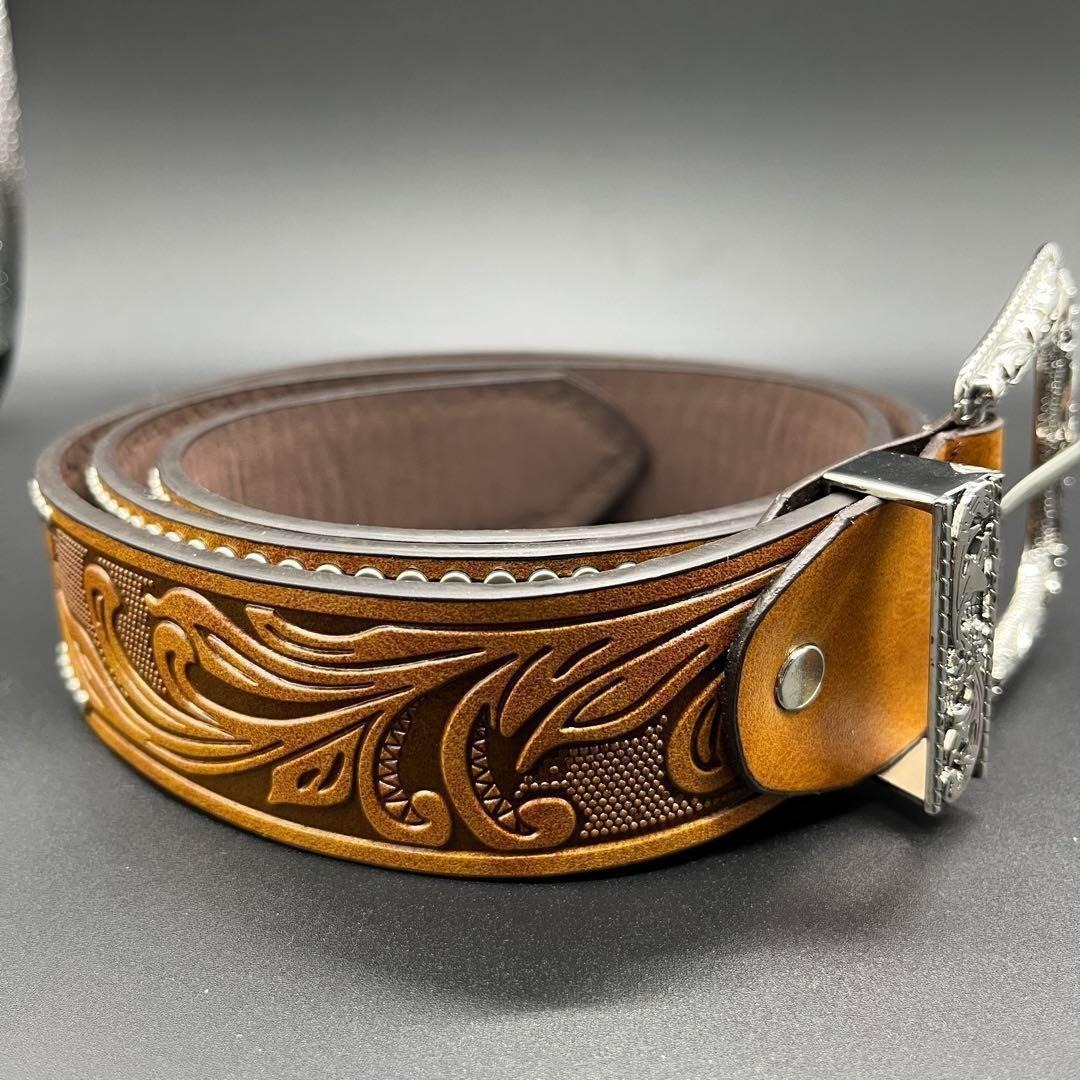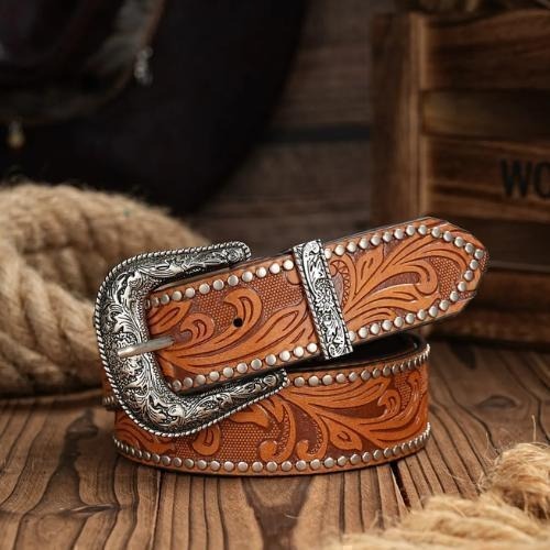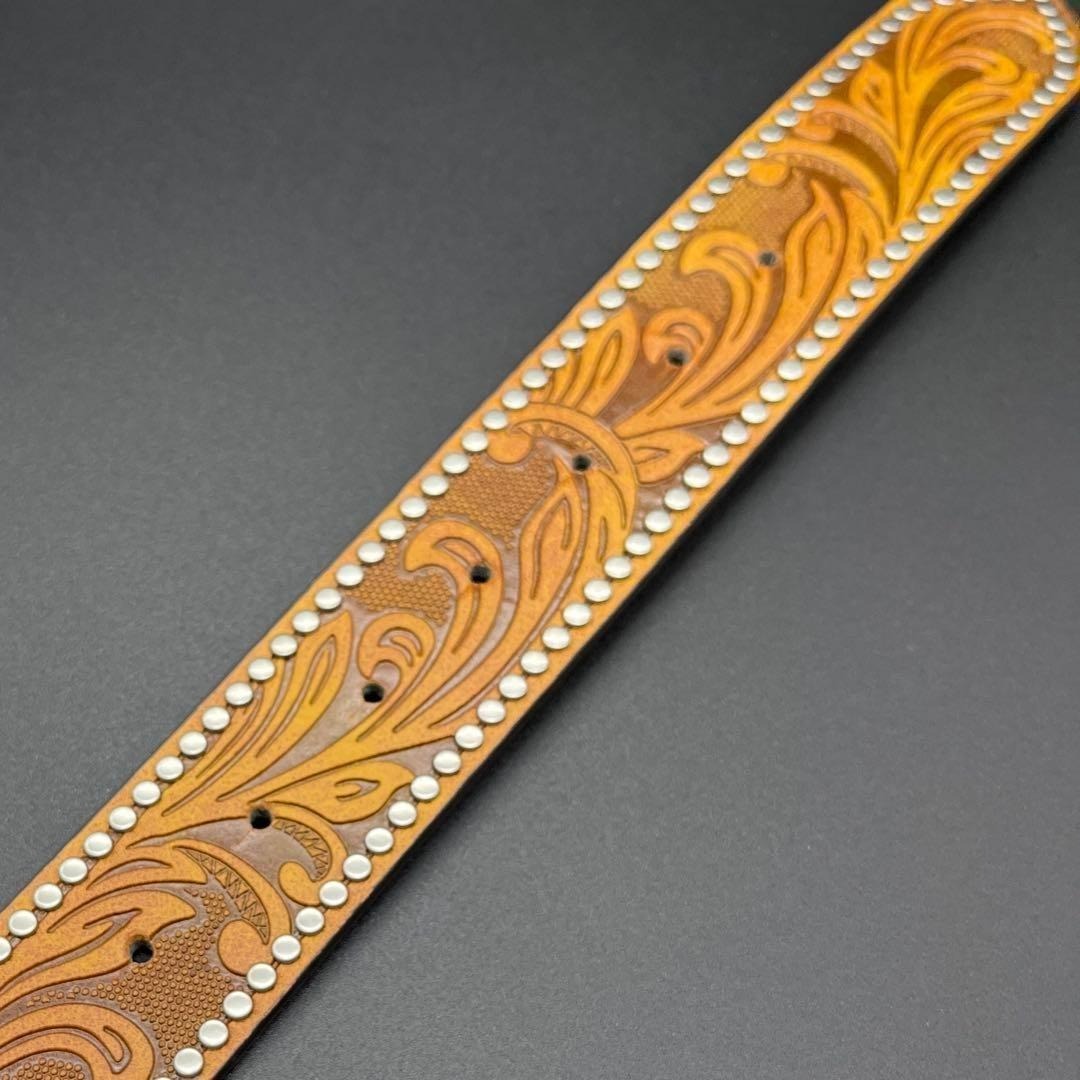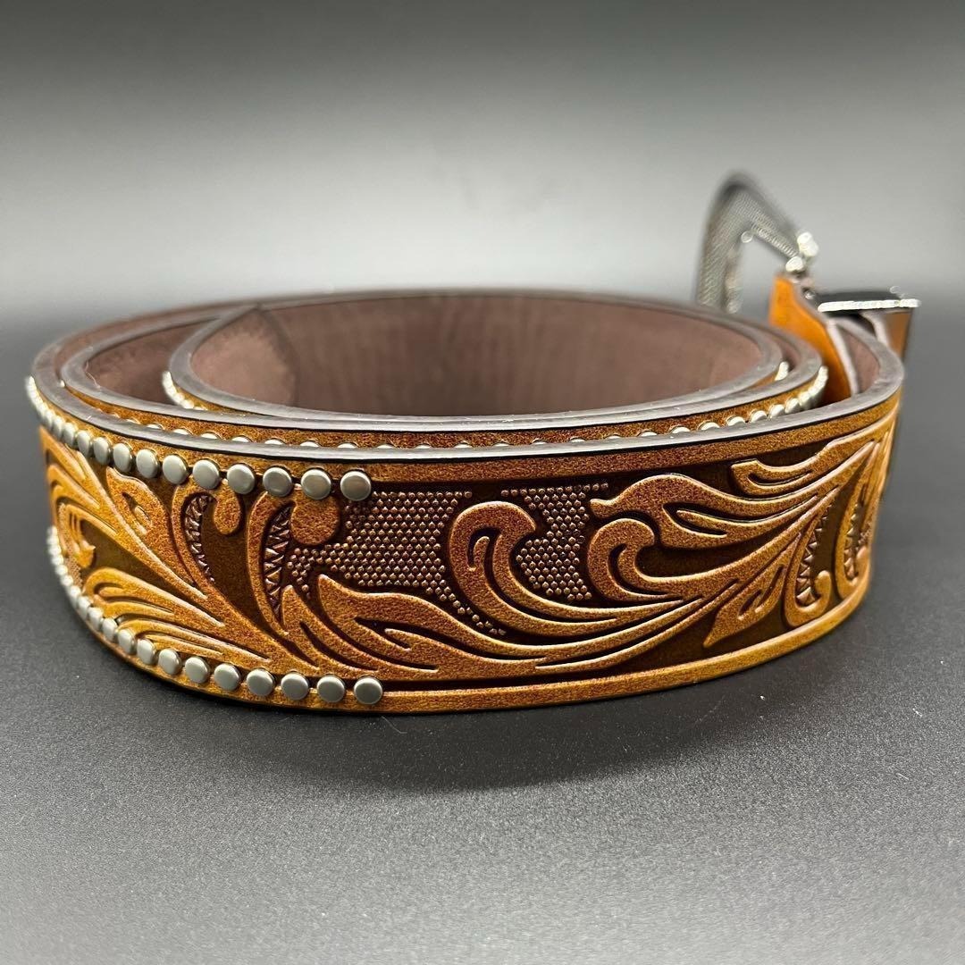 ウエスタンベルト スタッズ ベルト カフェブラウン アメカジ 120cm PUレザー メンズ おしゃれ ズボン ファッション 穴あけ付き