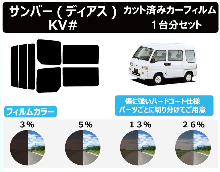 | 商品名稱 : | 【ノーマルスモーク透過率3%】スバル サンバーディアス (KV3/KV4) カット済カーフィルム リアセット |