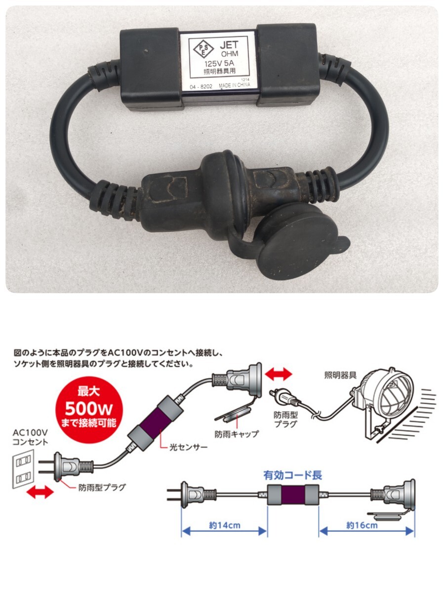 【LED電飾 クリスマスベル 屋外OK】 本体には錆や傷などが見られますが、点灯は問題ありません。 点滅などはしない常灯型です。 約W1000×H400㎜。 【イルミネーションカーテン 60球 スター 屋外OK 8パターン点滅】 本体には若干使用感が見られますが、点灯は問題ありません。 【イルミネーションLED投光器 RGB 16色点灯 防水加工】 本体には使用感が見られますが、点灯は問題ありません。 このままでも点灯はしますが電源コードに結線補修箇所(修理跡)がありますので、コードを交換するか適切な補修を行ってからご使用ください。 リモコンの電池蓋が破損しているので、テープで固定してあります。 電池は新品に交換済。 【防雨型光センサーコンセント】 照明器具とコンセントの間に接続するだけで明暗センサー機能が付きます。 周囲の明るさ約5~6ルクス以下でON、5~6以下でOFF。 動作確認済みの中古品です。 【防雨コンセント三個口 2.5m】 問題なく使用できます。中古品です。 【防雨コンセント一個口 5m】 問題なく使用できます。中古品です。 出品物は写真に写っているものが全てです。 【受け取り連絡は、商品をご確認いただけましたらお早めにお願いいたします。】 ヤフオク出品時の注意事項 1. 出品物の状態について 商品の状態は写真にてご判断ください。気になる点がありましたら、ご入札前にご質問ください。 2. 発送について お支払いの確認後、2~3日以内に発送いたします。 配送中の事故や破損については、運送会社の補償範囲内での対応となります。 3. その他 落札後、24時間以内にご連絡需在賣家要求時間完成匯款 、3日以内にご入金いただけない場合は、落札者都合でキャンセルとさせていただきます。 ノークレーム、ノーリターン、ノーキャンセルでお願いいたします。 ご不明な点がありましたら、必ずご入札前にご質問ください。 >