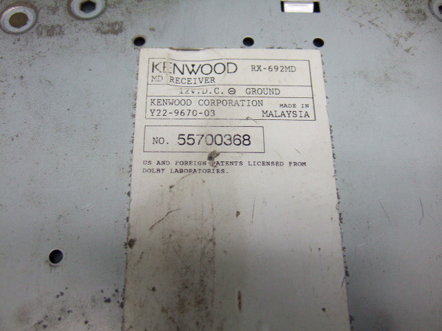 て1014 ケンウッド RX-692MD 41200886 MDプレーヤー FM/AM オーディオ 動作確認済み 中古現状品