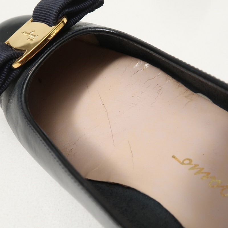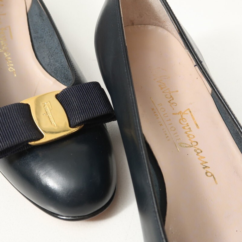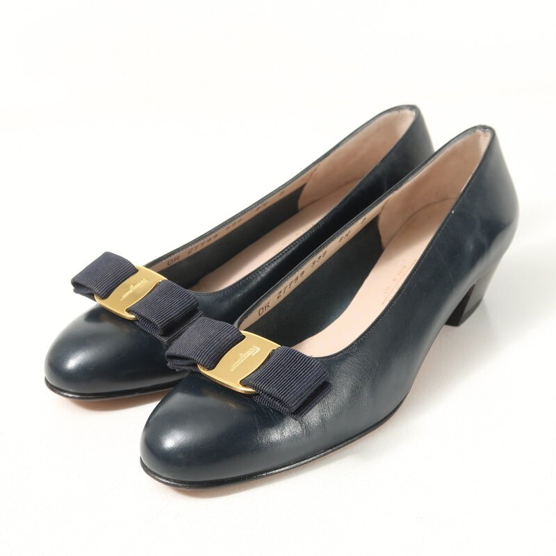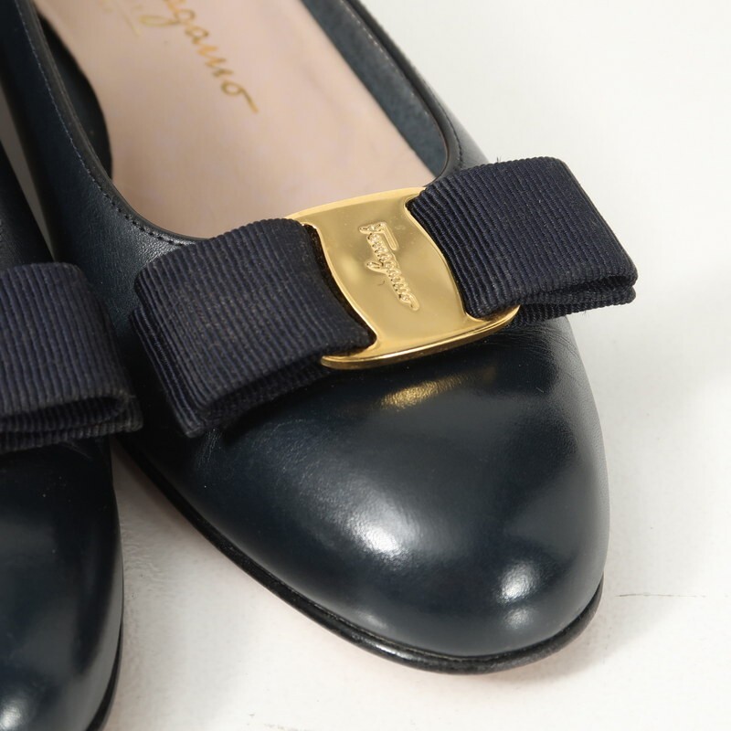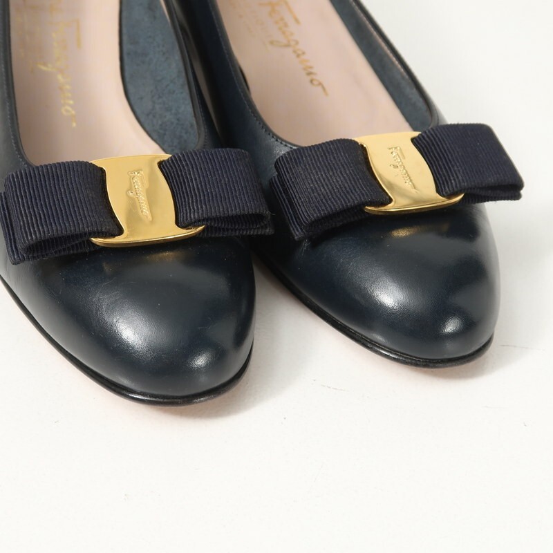 | GS3829*イタリア製 サルヴァトーレフェラガモ 6.5C(23.5cm相当) VARA ヴァラリボン レザーパンプス 靴 ネイビー | |||