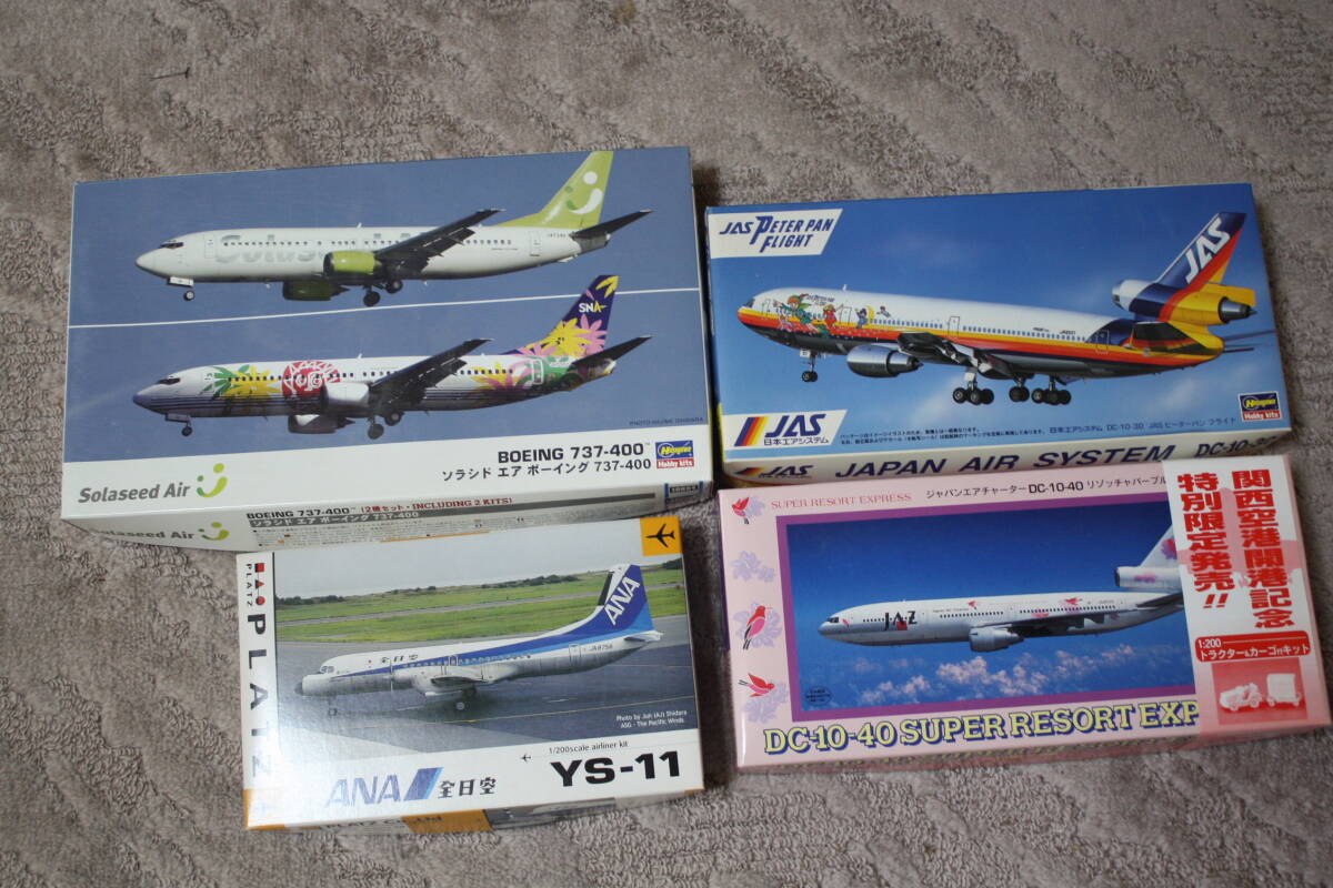ハセガワ他 プラモデル 旅客機 ソラシド ボーイング737-400、JAS DC-10-30、JAZ DC-10-40、ANA YS-11 未組立 現状