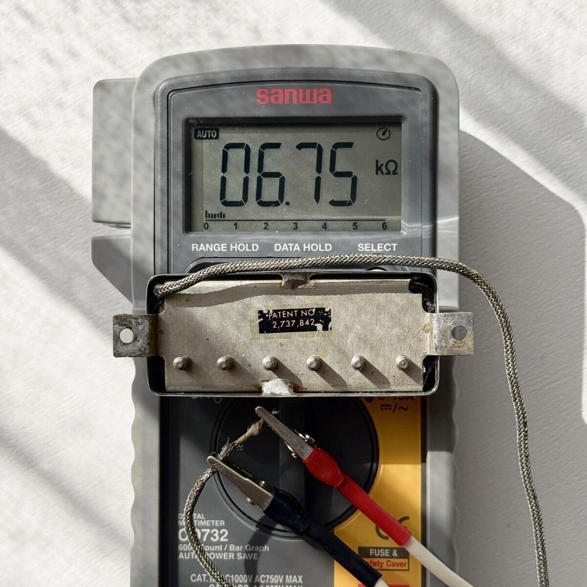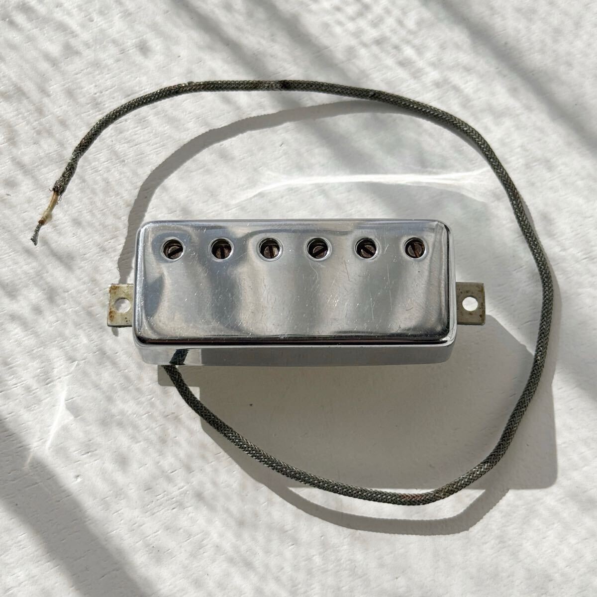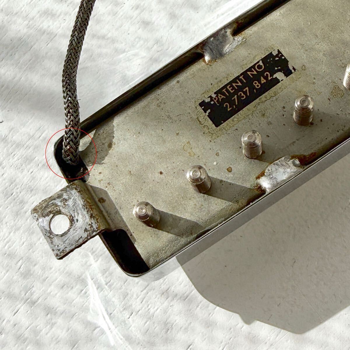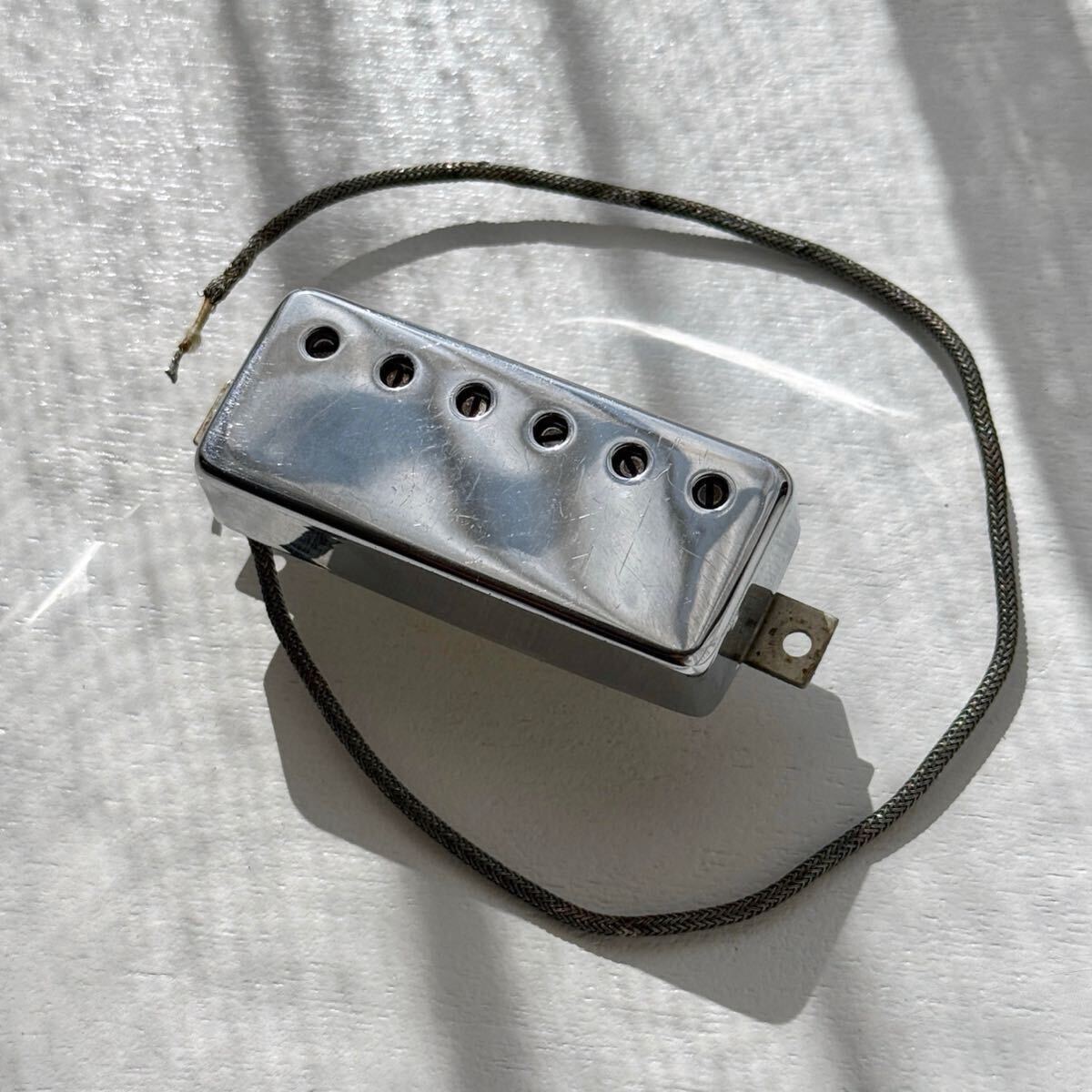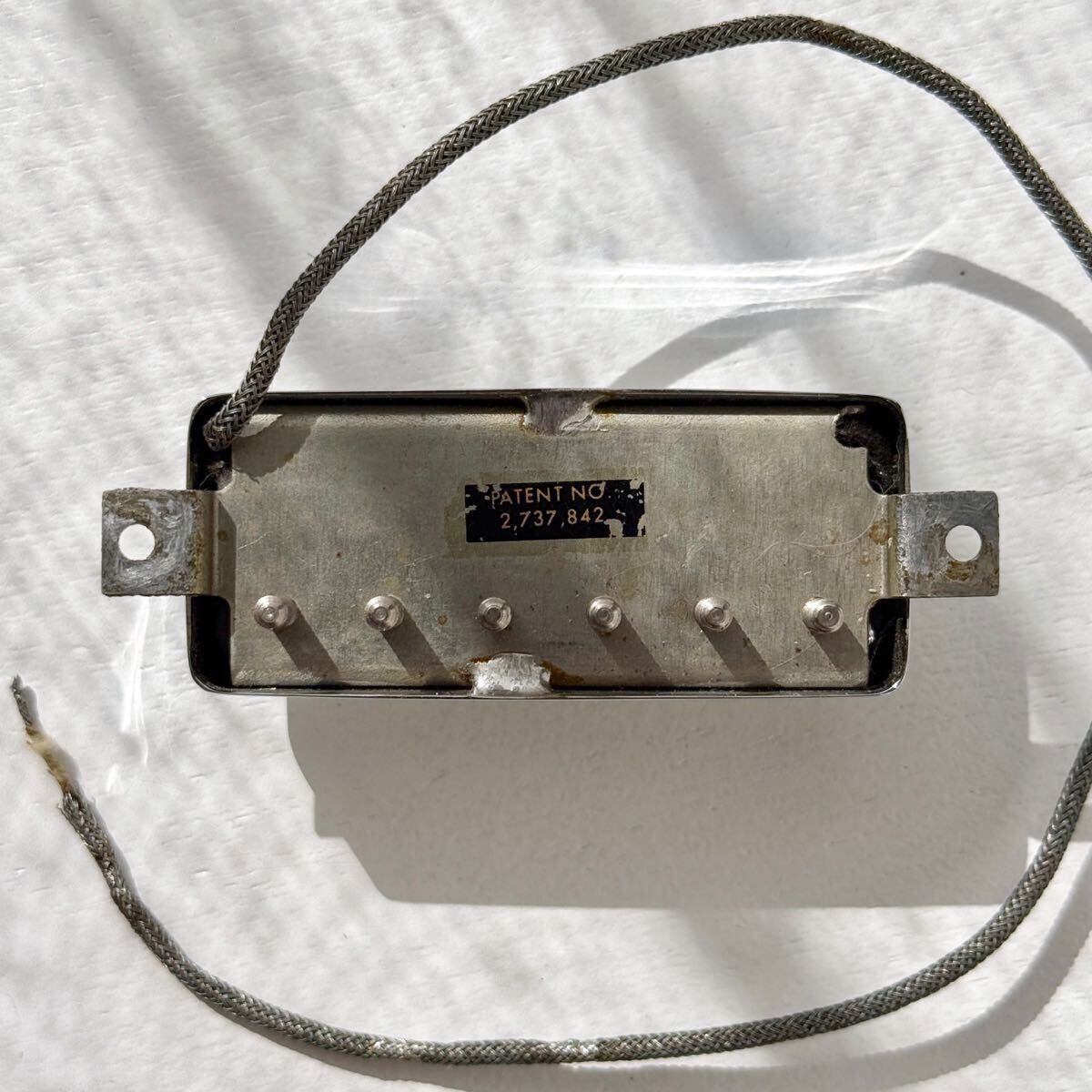 Gibson 1967〜1975 Mini Humbucking Patent Number-P.A.F pickup #2,737,842 From Les Paul Deluxe Nice output reading of 6.75kΩ Made in USA #1278 ギブソン パテントナンバー ステッカード PAF #2,737,842 ミニハムパッカーの出品です。 Gibson 1967〜1975 Les Paul Deluxe より取り外されたものになります。 レスポール デラックス などの交換部品としては勿論ですが 画像10. テレキャスター (要改造)、又は アーチトップ ジャズギター (要改造) への贅沢なカスタム古董商品,有可能客製化、修改、換過零件,請下標錢注意。 パーツとしてもお薦め致します。 今後は 入手困難な 一品かと思います、是非ご検討下さい。 画像3. : 抵抗値 6.75kΩ (撮影時測定値) 数値は気温や環境により変動が御座います。数値は目安とお考え下さい。 画像4. : オリジナルのクロームメッキによるシルバーのカバーでハンダを外した跡はありません。 画像4.5. : ベースプレートプレス加工が 通常とは 逆にプレスされた プレートが使われています。 配線位置は 通常通りであり性能、取扱に影響はございません。赤◯部分をご確認下さい。 画像4.5.9 : ベースプレート脚部のネジ穴はスレッドレス、直付けタイプになります。 画像7. : ブレイデッド ワイヤーは 勿論 現行の3本編みではなく、PAFと同様の2本編みになります。 画像10. : テレキャスにマウントした場合の参考画像です。( 本商品ではありません。) ・ギブソン ・ PATENT NO 2,737,842 ・抵抗値 6.75kΩ (撮影時測定値) ・ワイヤー長 : 約29cm ・カラー : Chrome plating (Silver) ・動作確認済 完品をお求めの方、状態に神経質な方には お薦め致しません。 ご不明な点が ございましたらお問合せ下さい。 #MiniHumbucker #PAF #PatentNumber #LesPaul #Deluxe #Telecaster #テレキャス #レスポール #paf >