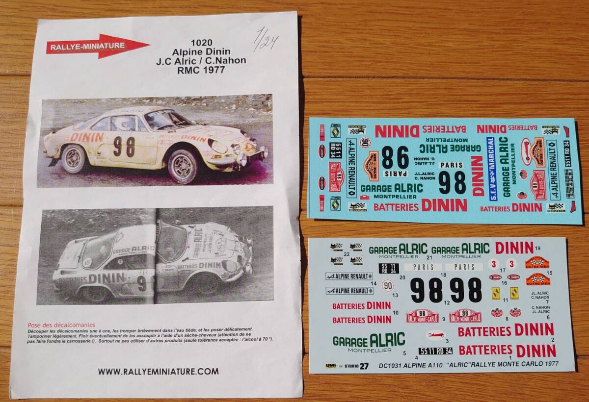 | 商品名稱 : | 1/24 アルピーヌ A110 モンテカルロ1977 デカールセット(スタジオ27+ラリーミニチュア) |