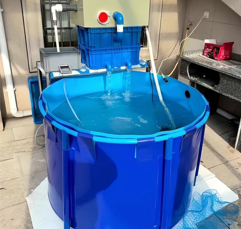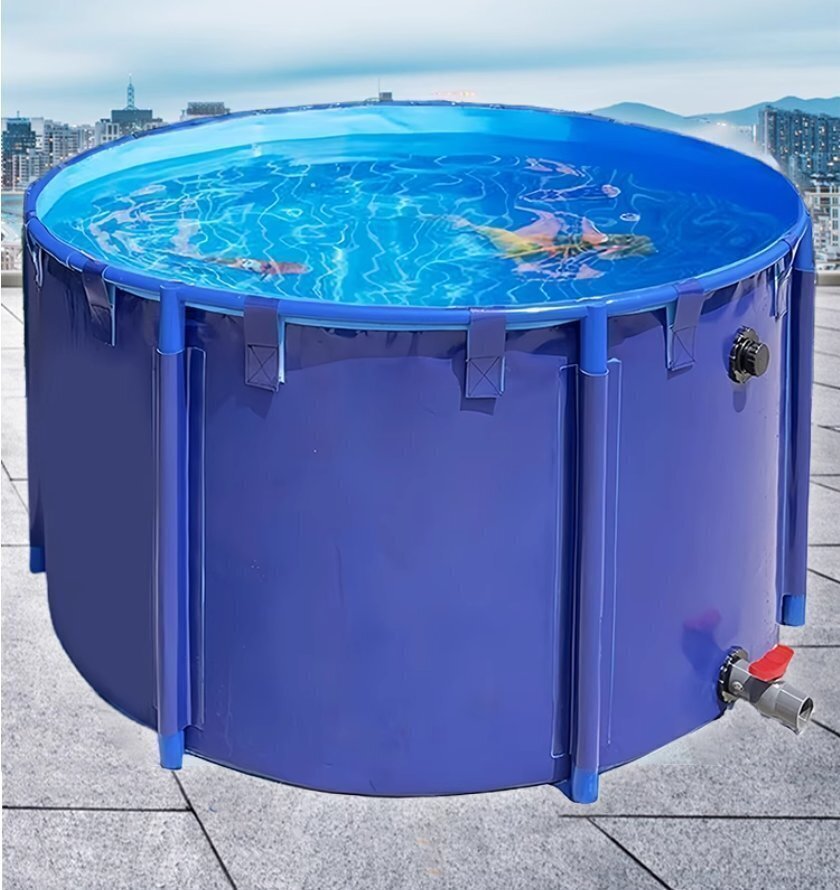大型円形の帆布魚池厚手支柱 防水布貯水プール養殖水槽錦鯉一時飼育池900L >