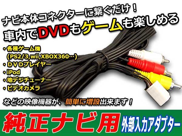 商 品 説 明 ディーラー純正のナビにハーネスキットを取り付けるだけで、 iPodやDVDプレーヤーの入力(音声・映像)が可能になります。 ・カプラーON設計ですので取付簡単! (モニター画面に"VIDEO"や"VTR"の表示される車両も使用できません。