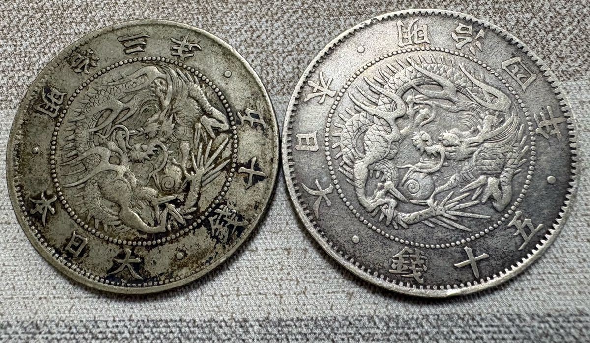 | 商品名稱 : | 旭日竜大型50銭銀貨 明治3.4年 美品 |