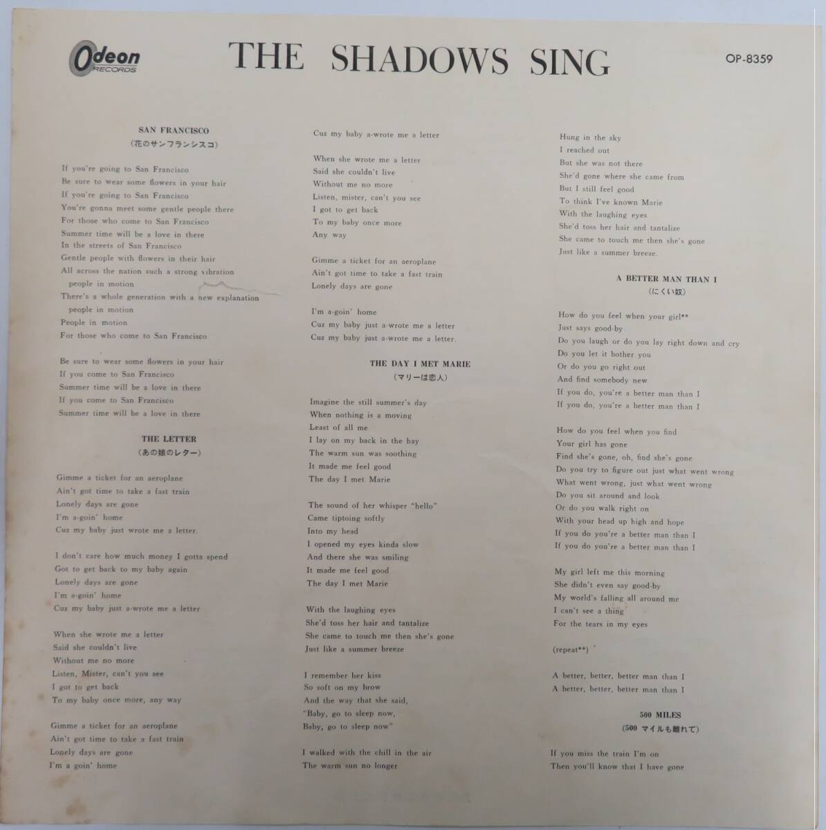 商品情報 アーティスト ザ・シャドウズ タイトル The Shadows Sing シャドウズは歌う (OP-8359) 番号 OP-8359 種類 ●1F3662 / LP1枚 プレス JAPAN 管理No. A00615802 付属品 ライナー コメント 赤盤