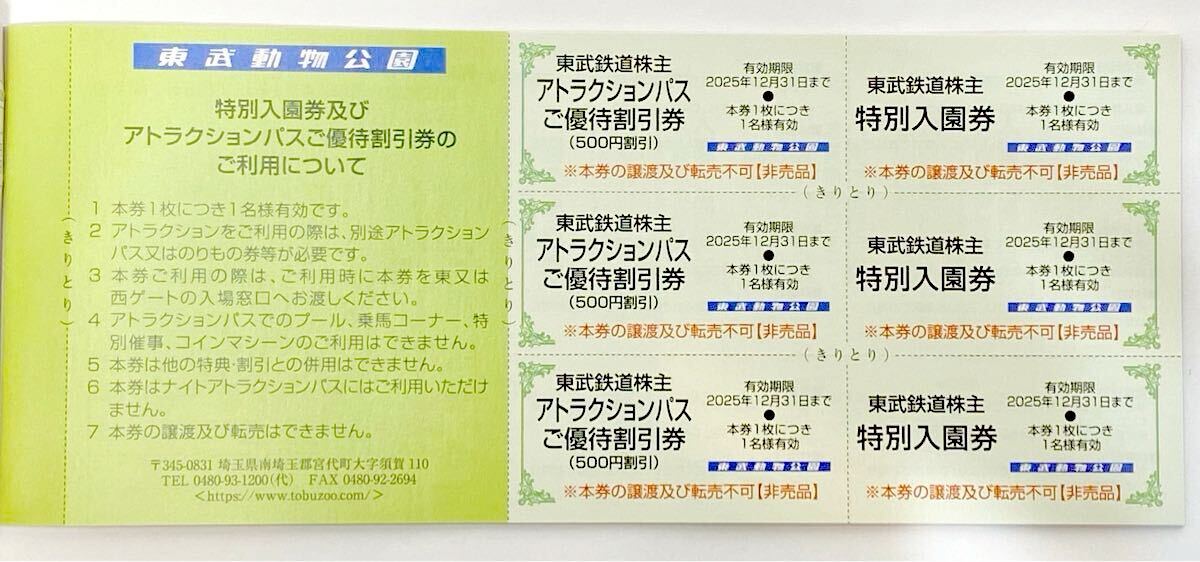 東武鉄道 株主優待券 1冊 未使用 2025年12月31日まで 送料無料!