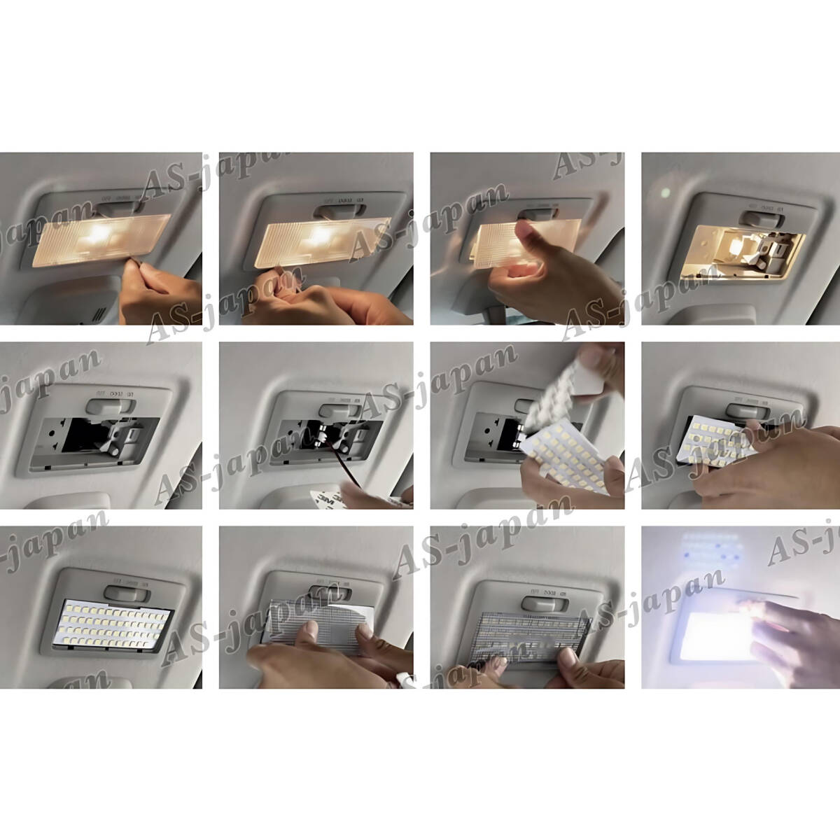 純正ルームランプのレンズを外し、純正球と付け替えるだけの簡単装着です。