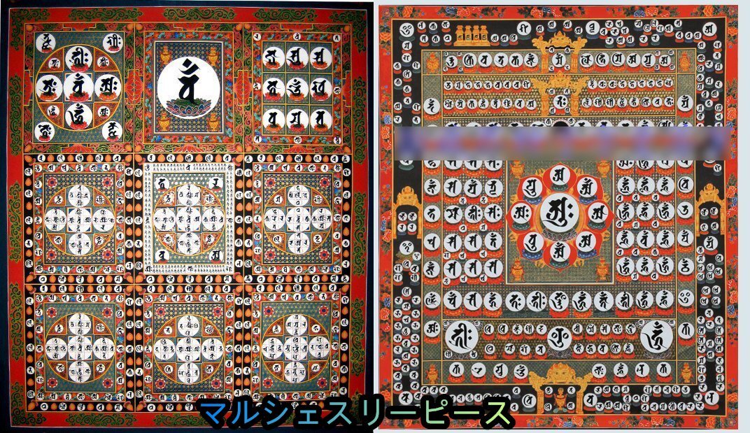 曼荼羅金剛界曼荼羅 胎蔵界曼荼羅 種子字曼荼羅画 伝真言院両界曼荼羅 唐密東密密教 観法 金剛界胎蔵界 2点セットY38140